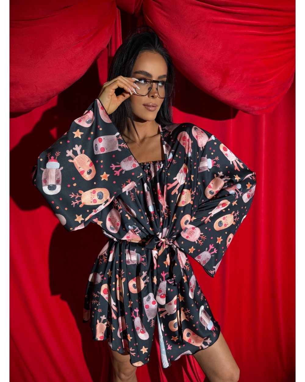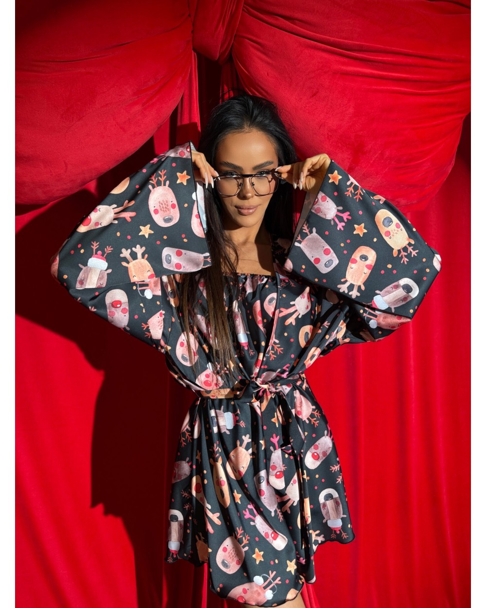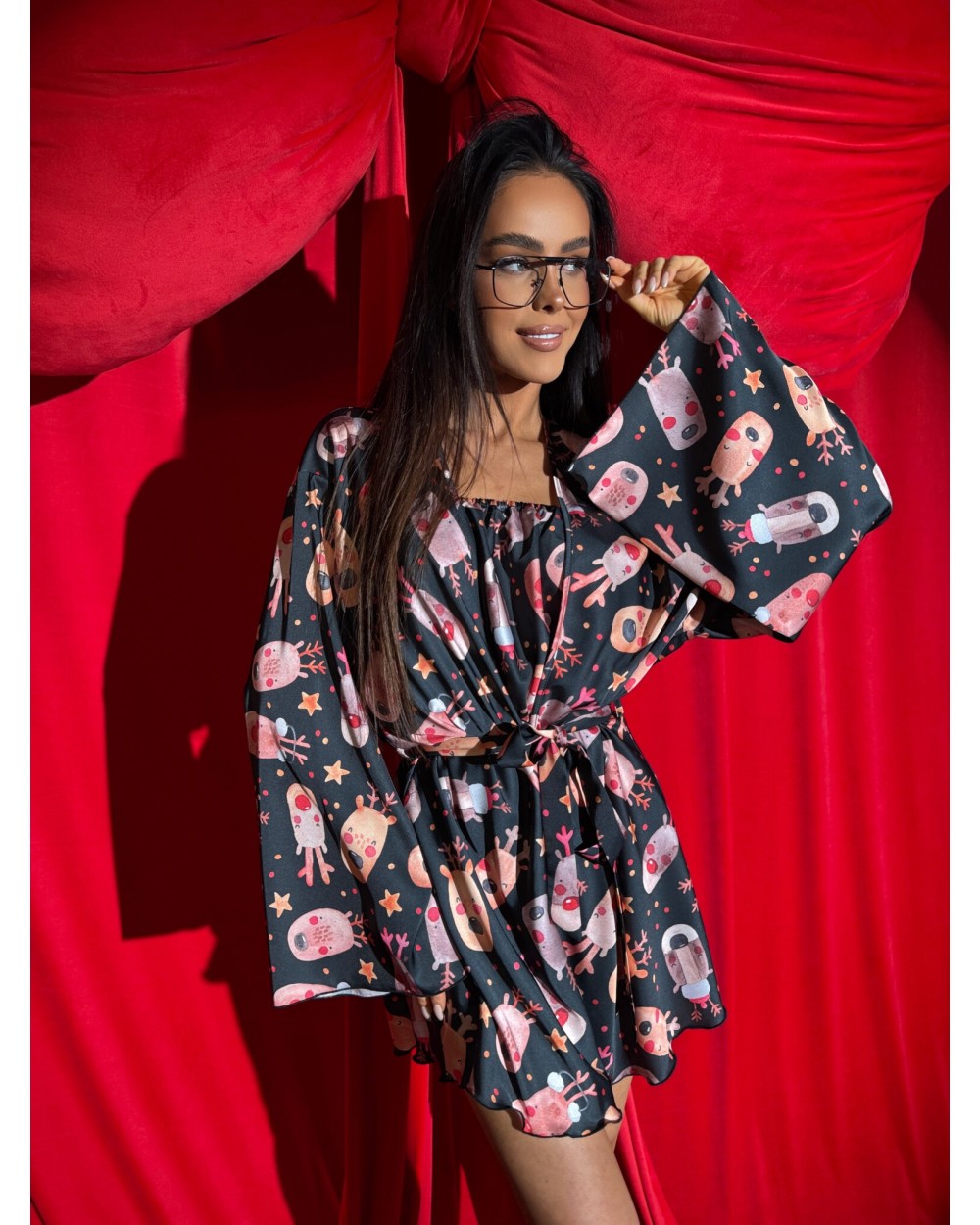 Szlafrok, który wygląda jak prezent sam w sobie. Lekki, zwiewny i pełen uroku – stworzony z myślą o świątecznych porankach, domowej atmosferze i chwilach, które chce się celebrować. Printy w słodkim, zabawnym klimacie dodają mu charakteru i sprawiają, że trudno się nie uśmiechnąć. Wiązanie w talii podkreśla sylwetkę, a oversize’owy fason daje pełen luz i swobodę. Idealny na prezent, dla siebie lub dla kogoś, kto zasługuje na coś wyjątkowego. LAMANUEL w wersji cute – totalnie do pokochania.