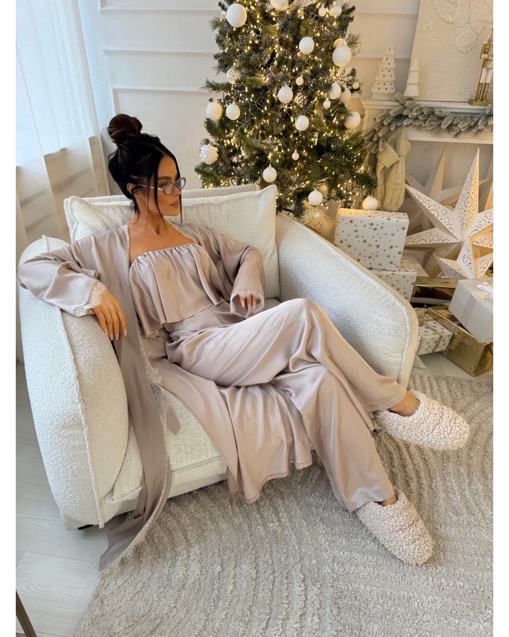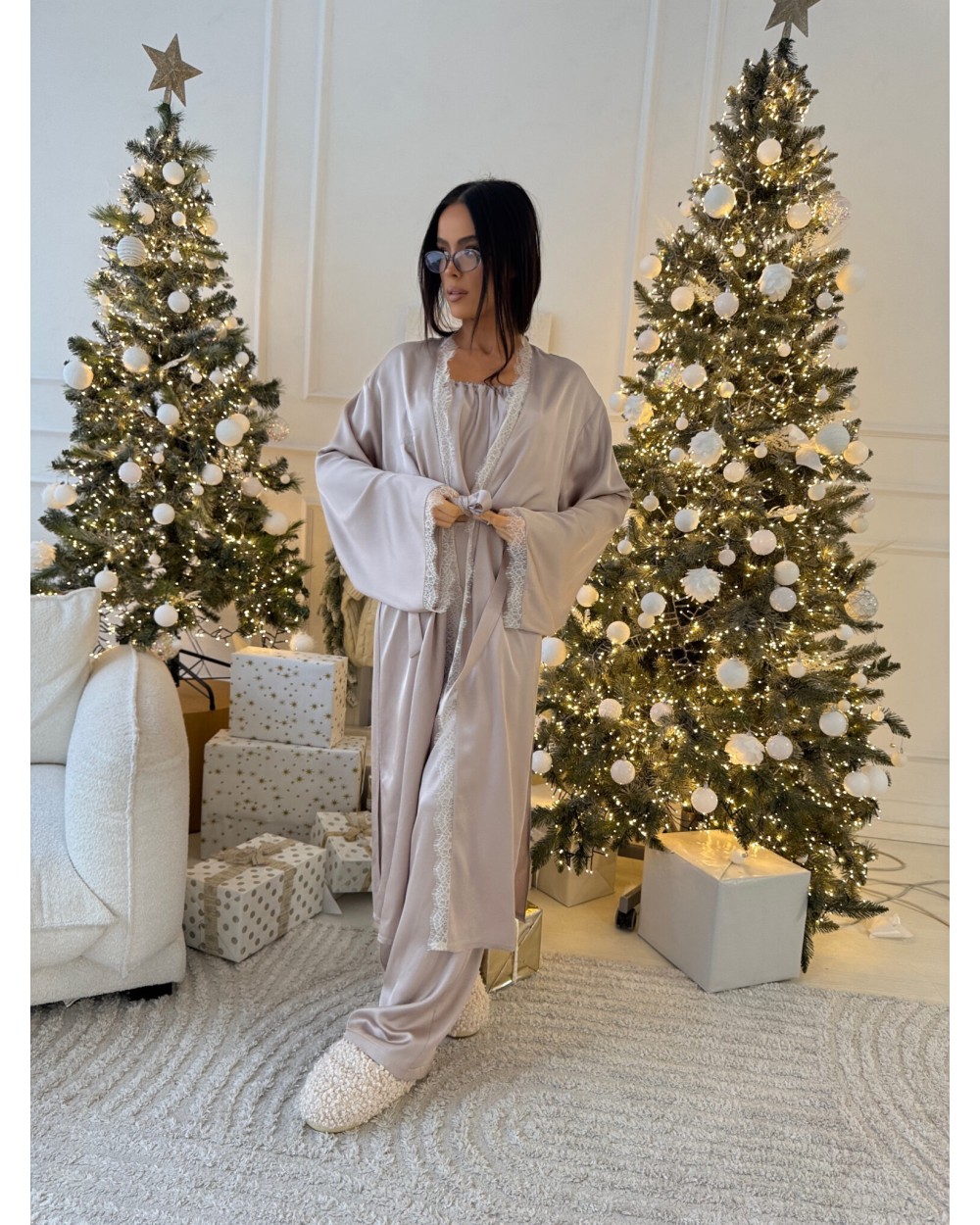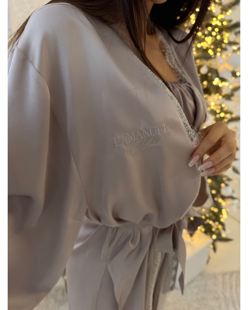 Szlafrok, który wygląda jak luksus – i dokładnie taki jest. Wykonany z wysokogatunkowej, naturalnej wiskozy o satynowym wykończeniu, gwarantuje nie tylko wyjątkową miękkość, ale też przewiewność i komfort noszenia. Tkanina pięknie się układa, subtelnie błyszczy i jest przyjemna dla skóry – nawet tej najbardziej wymagającej. Delikatna koronka i haftowane logo LAMANUEL podkreślają jego wyrafinowany charakter. To produkt klasy premium, który robi wrażenie – od materiału po każdy detal. Idealny dla kobiety, która wybiera jakość i chce czuć się wyjątkowo – codziennie.