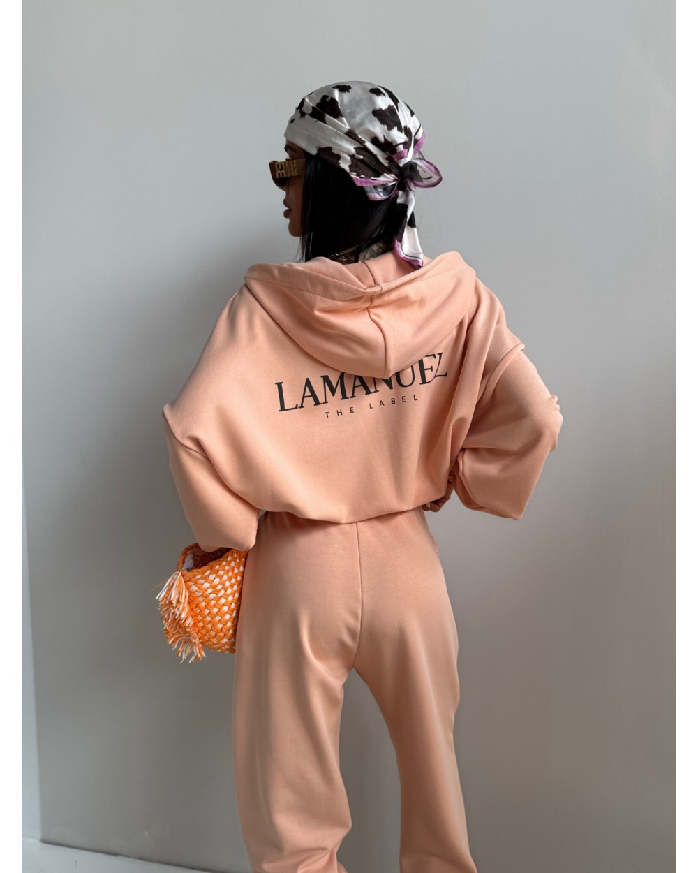 Bluza o luźnym kroju zapinana na suwak z kapturem i wszytym ściągaczem na dole, który umożliwia regulację szerokości i podkreślenie talii. Rękawy szerokie, zakończone delikatną gumką. Na piersi oraz na plecach znajduje się wyraziste logo LAMANUEL, które nadaje całości charakteru. Model wykonany z miękkiej, przyjemnej w dotyku dzianiny, idealny na co dzień i w podróży. Połącz je ze spodniami CLOUDY, aby mieć stylizację w całości. Bluza pasuje od rozmiaru XS do XL.