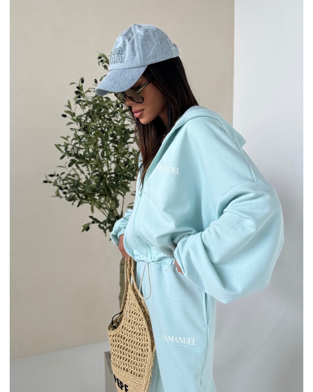 Bluza o luźnym kroju zapinana na suwak z kapturem i wszytym ściągaczem na dole, który umożliwia regulację szerokości i podkreślenie talii. Rękawy szerokie, zakończone delikatną gumką. Na piersi oraz na plecach znajduje się wyraziste logo LAMANUEL, które nadaje całości charakteru. Model wykonany z miękkiej, przyjemnej w dotyku dzianiny, idealny na co dzień i w podróży. Połącz je ze spodniami CLOUDY, aby mieć stylizację w całości. Bluza pasuje od rozmiaru XS do XL.