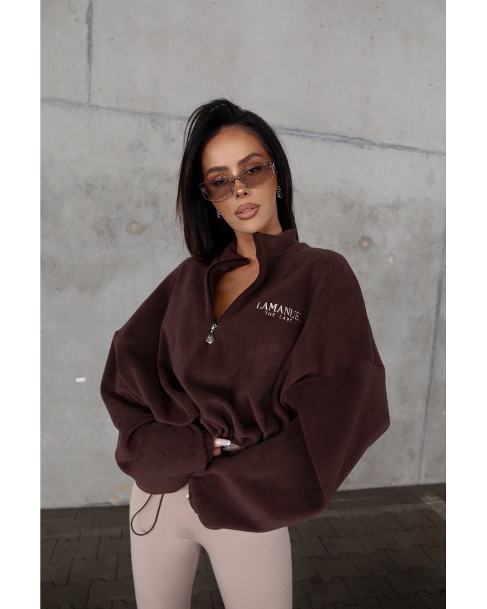 Oversize’owa bluza wykonana z grubszego, ciepłego polaru, który świetnie sprawdzi się w chłodniejsze dni. Materiał jest miękki, przyjemny w dotyku i dobrze trzyma ciepło. Model z krótkim zamkiem i wysokim kołnierzem, który możesz postawić lub odpiąć dla swobodniejszego looku. Z przodu i na plecach tonalny haft z logo LAMANUEL. Dół bluzy regulowany – można ją nosić luźno lub ściągnąć troczkiem. Dzięki uniwersalnemu, luźnemu krojowi pasuje również na sylwetki do XL.