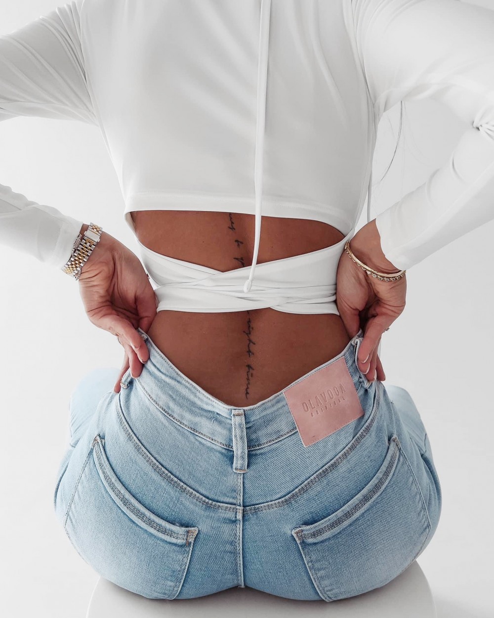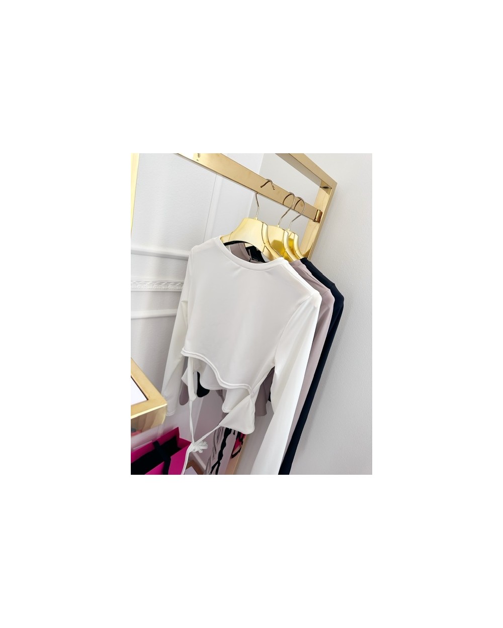 Elegancki, dopasowany top z długim rękawem i fantazyjnym wiązaniem z tyłu. Idealny do jeansów, szortów czy dopasowanych legginsów. Wysokiej jakości, gładki materiał, bluzka uszyta z dbałością