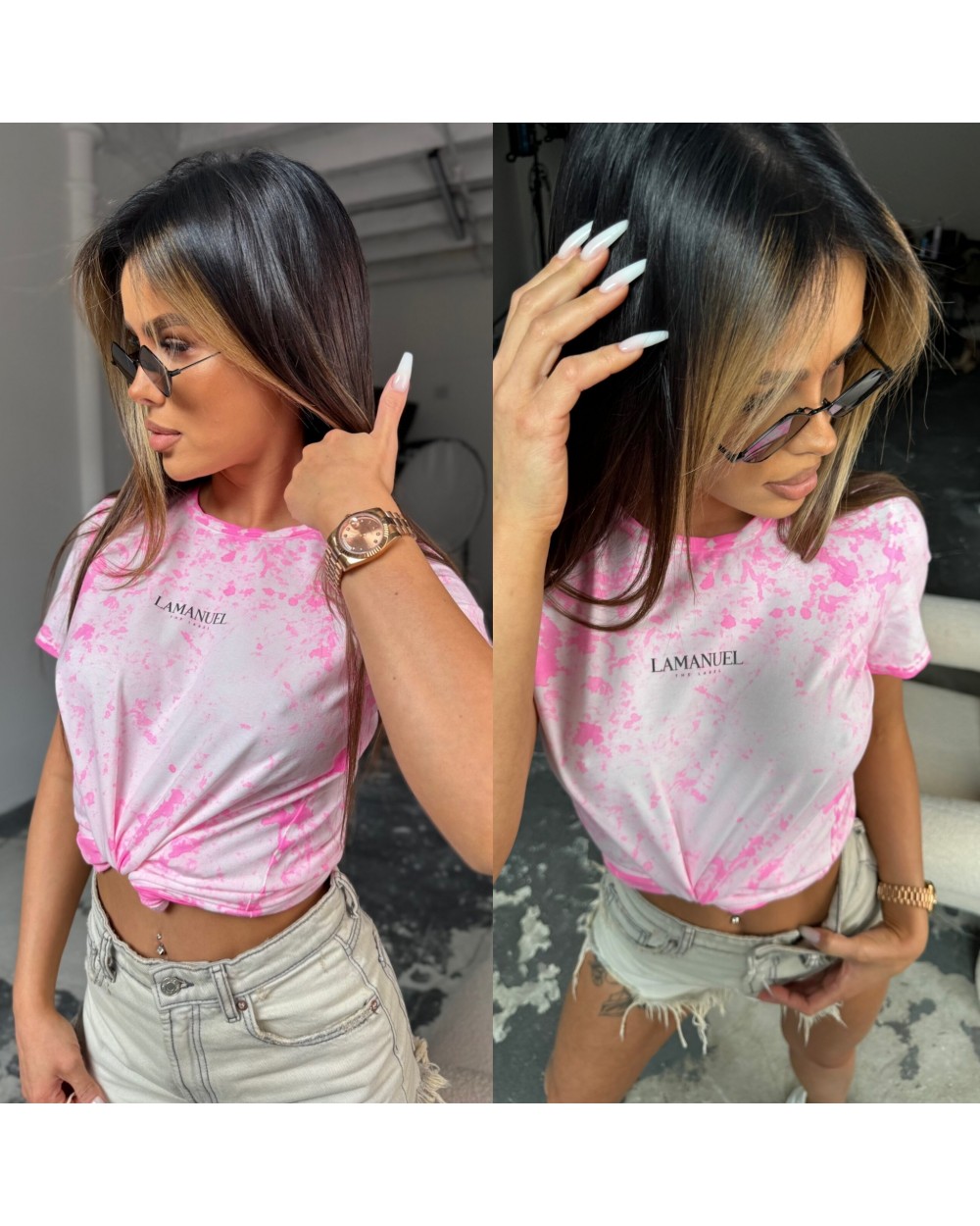 Nasza koszulka damska wykonana metodą sprania handmade z krótkim rękawem to basicowy element garderoby. Wykonana z wysokiej jakości materiałów. Jej krótki rękaw zapewnia swobodę ruchu i wygodę, idealną na letnie dni i aktywności na świeżym powietrzu. Logo marki umieszczone na przodzie koszulki dodaje jej charakteru i podkreśla tożsamość marki, tworząc niepowtarzalny look.