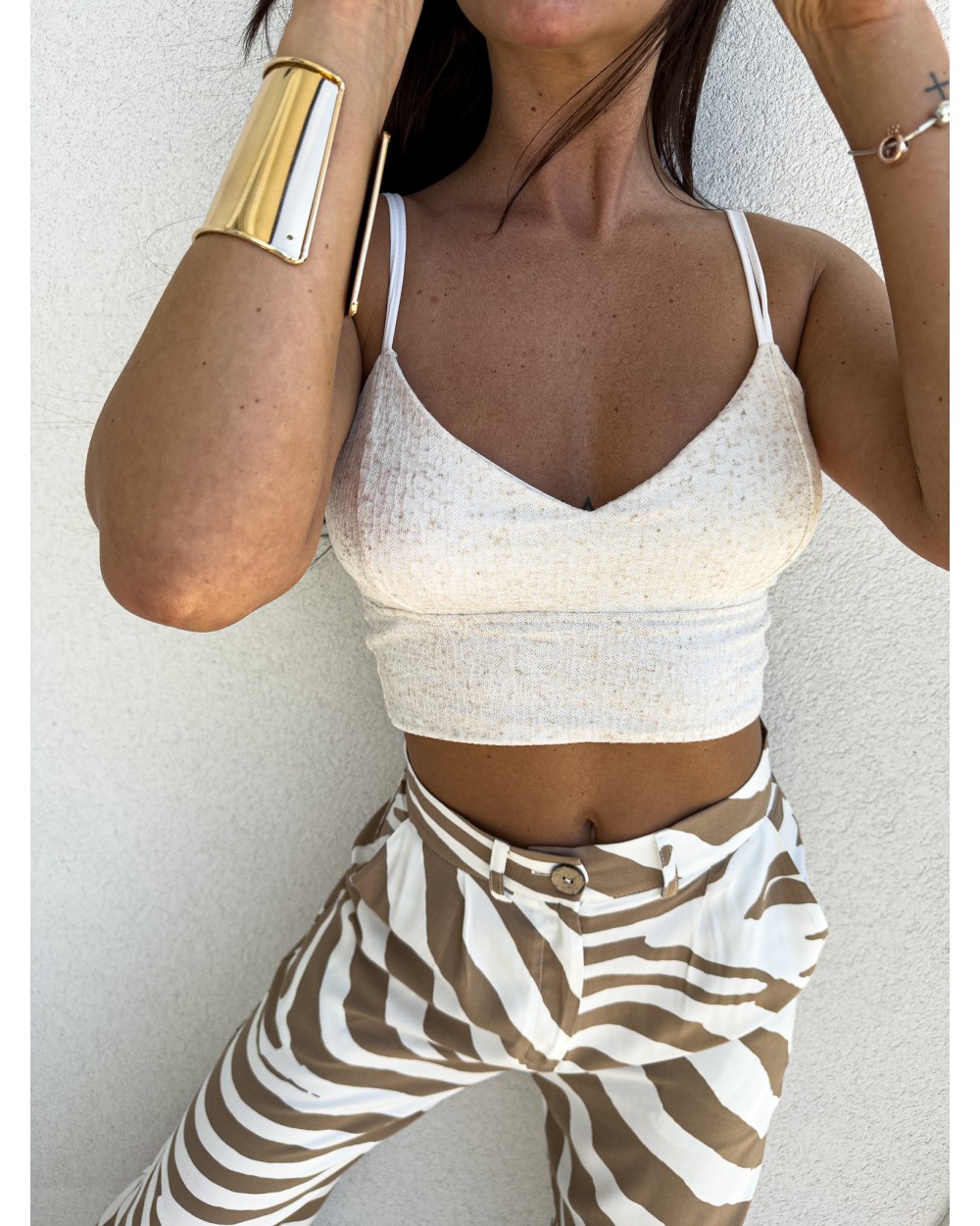 Top NATURAL jest dopasowany i pięknie podkreśla biust. Posiada usztywniane miseczki z możliwością ich wyjęcia. Nie posiada ozdobnych brzegów.