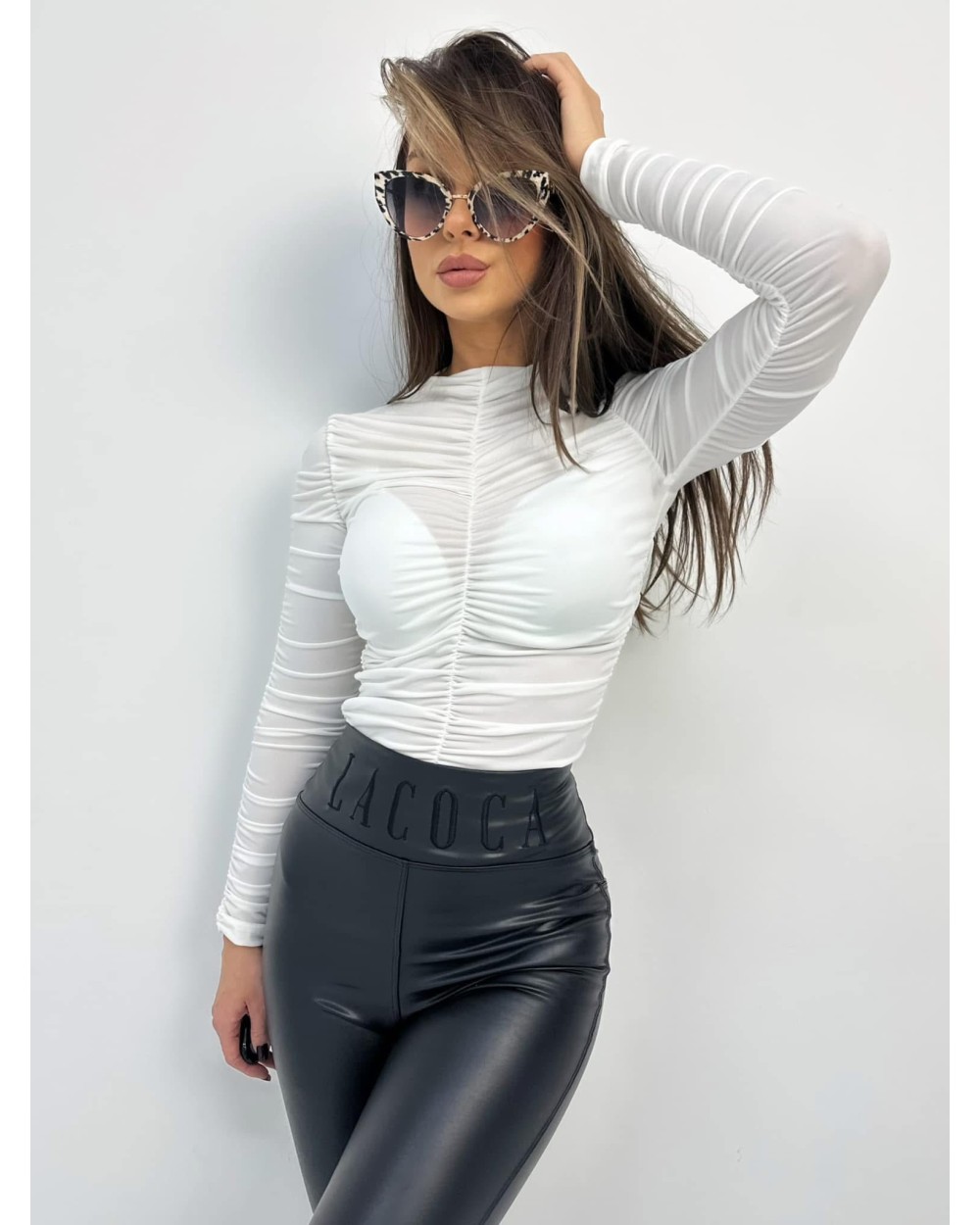 Bluzka VENUS Uszyta w Polsce, ze starannością, z bardzo dobrego, oddychającego materiału wiskozowego Bluzka w formie półgolfu, posiada modne i nadające nowoczesnego wyglądu marszczenia