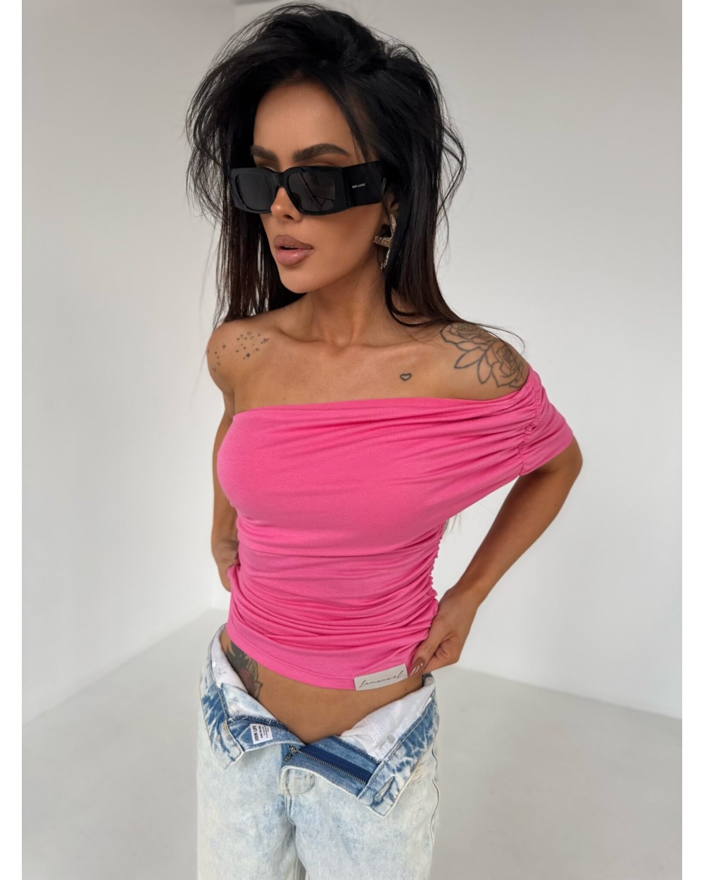 Asymetryczny top bez rękawa to idealny wybór, gdy chcesz dodać swojej stylizacji subtelnej elegancji. Marszczenia na jednym ramieniu nadają mu ciekawy detal, który wyróżni Cię w tłumie. Świetnie komponuje się z dopasowanymi spodniami, szerokimi jeansami lub kobiecą spódnicą. Idealny na wieczorne wyjście, randkę czy letni dzień w mieście.