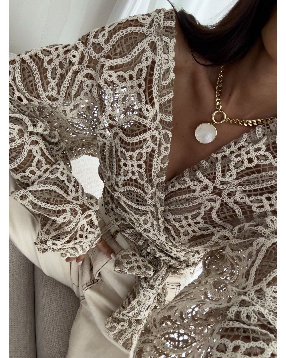 BLUZKA KIMONO AŻUROWE ▪️premium puder beż