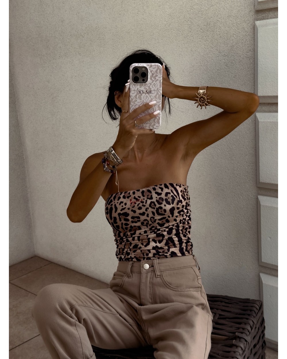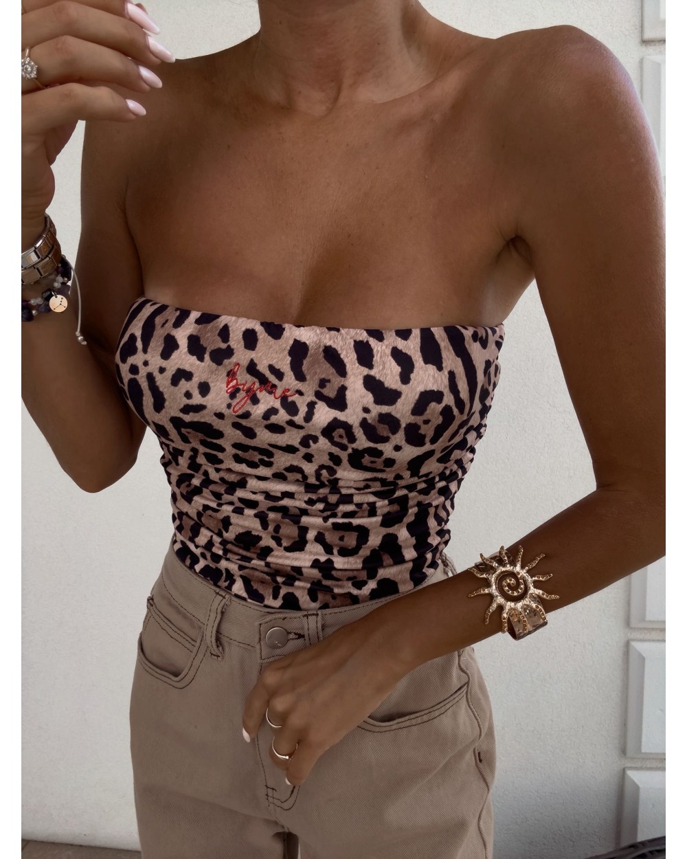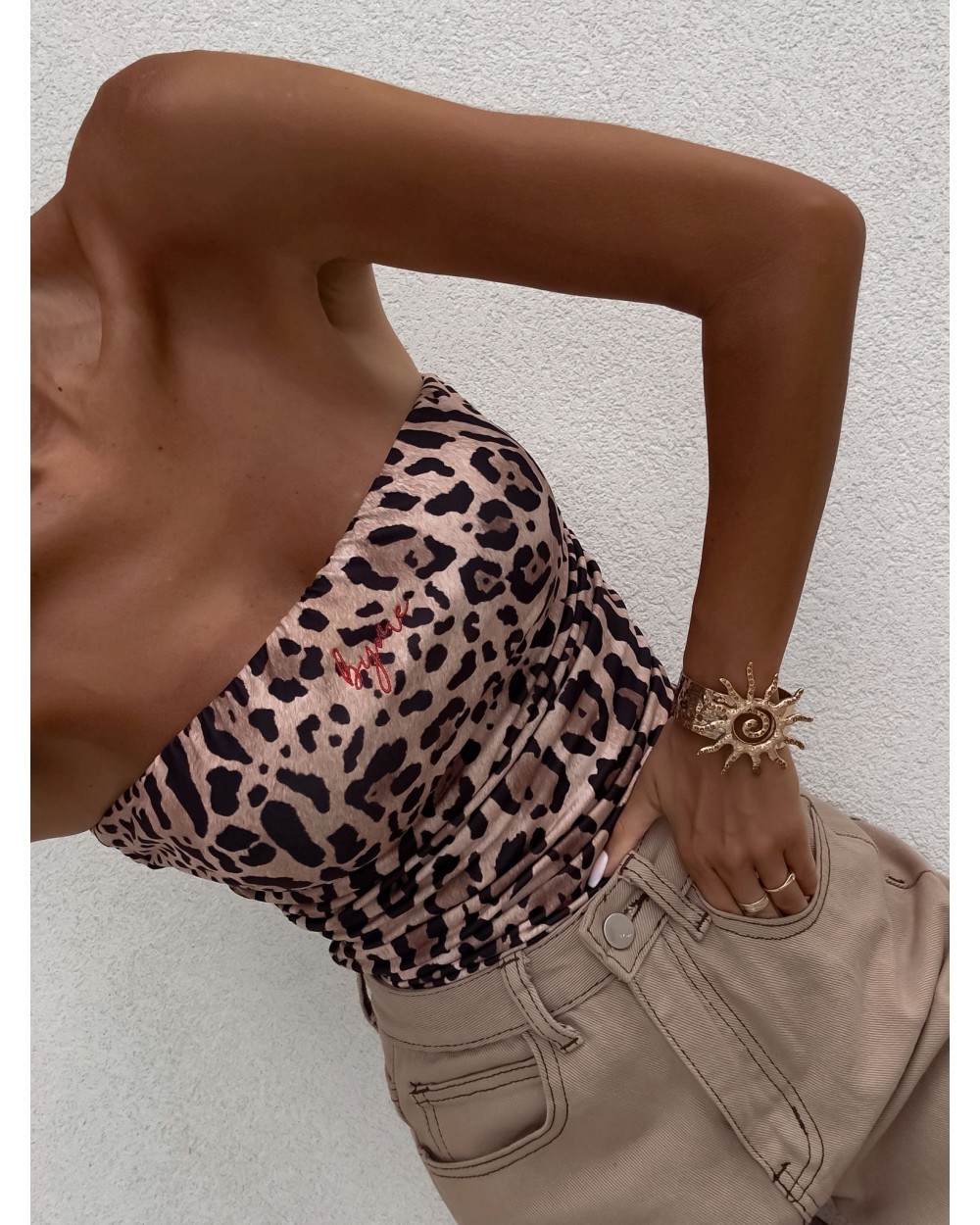 Top logowany bez ramiączek to idealna baza do wielu stylizacji – od codziennych po wieczorowe. Wykonany z elastycznego, idealnie dopasowującego się materiału, gwarantuje komfort noszenia i świetne dopasowanie do sylwetki. Top posiada podwójną warstwę materiału, co zapewnia lepsze krycie i trwałość, a subtelne marszczenia po bokach i z tyłu dodają mu charakteru i delikatnie modelują figurę. Uniwersalny krój sprawia, że będzie świetnie wyglądać zarówno solo, jak i w połączeniu z marynarką czy oversize’ową koszulą.