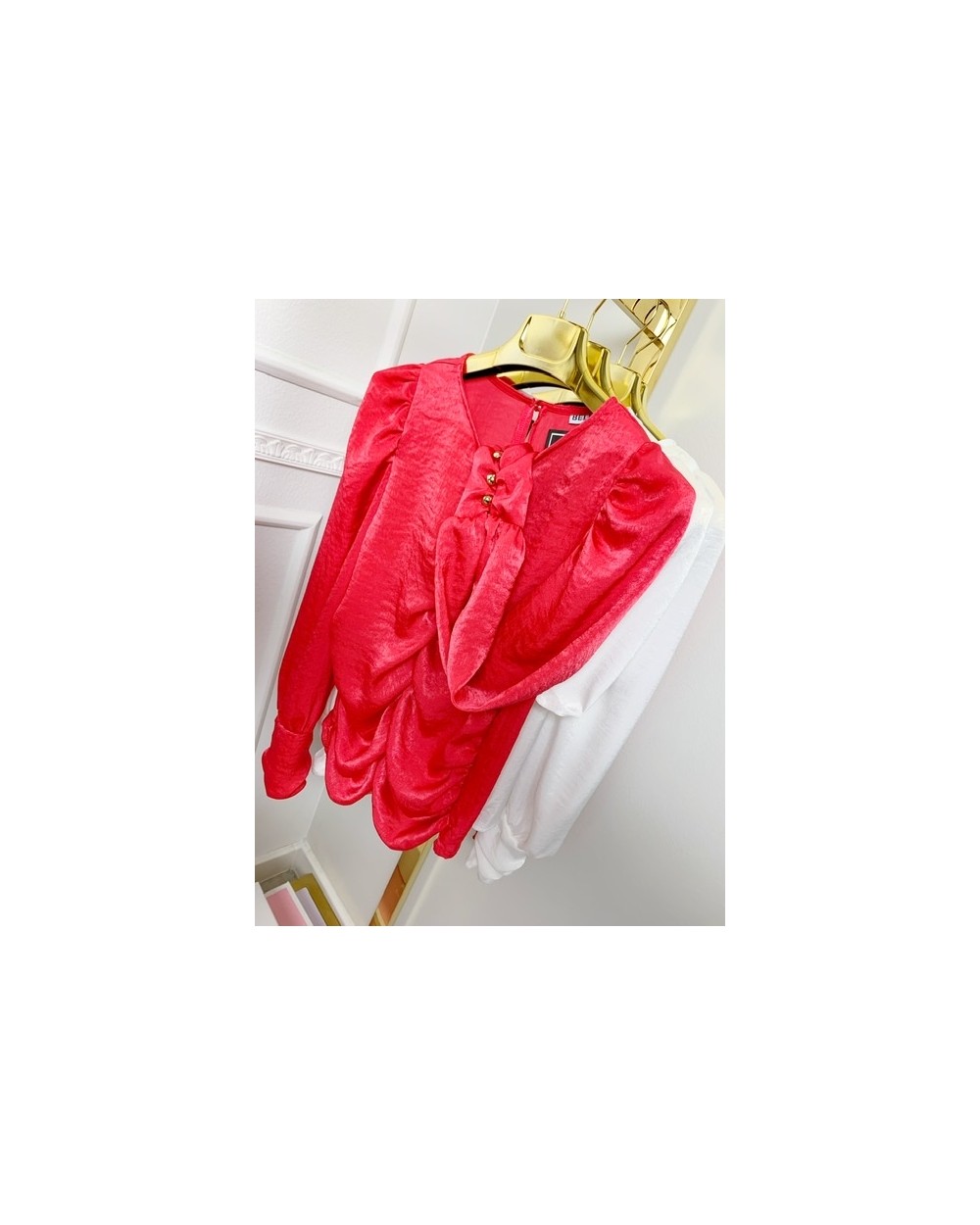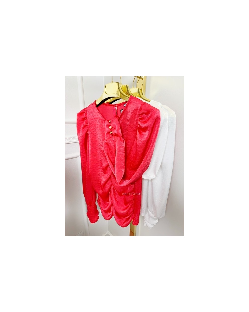 Niezwykle stylowa i elegancka Bluzka ELEGANCE z boku zamek , marszczenia ,zdobiona złotymi guzikami przy mankiecie .