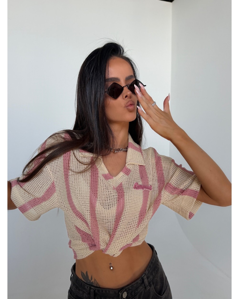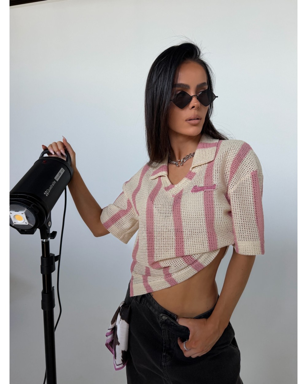 Swobodna forma inspirowana klasycznym polo, w nowoczesnym wydaniu. Ażurowa struktura nadaje lekkości i sprawia, że model wyróżnia się na tle basicowych propozycji. Luźniejszy fason zapewnia komfort noszenia i naturalnie układa się na sylwetce, bez zbędnego dopasowania. Kołnierzyk i krótki rękaw podkreślają sportowy charakter, przełamany dopracowanymi detalami. Kontrastowe pasy dodają wyrazistości i budują całą stylizację. Idealna baza do codziennych looków – od luźnych, po bardziej stylowe zestawienia.