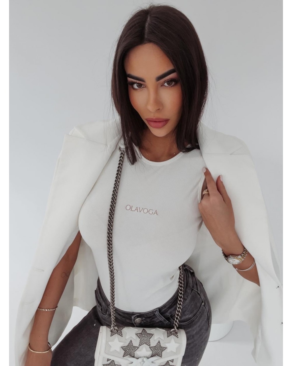 Obwód w biuście: 74cm (materiał rozciąga się do 20cm)