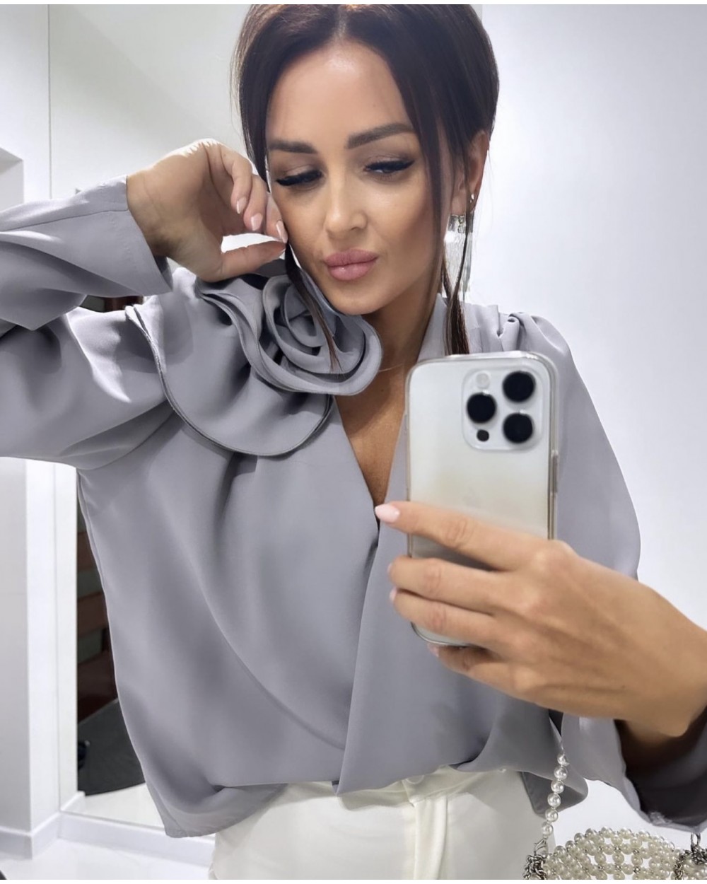 KOSZULA Z RÓŻA ▪️NEW SZARA