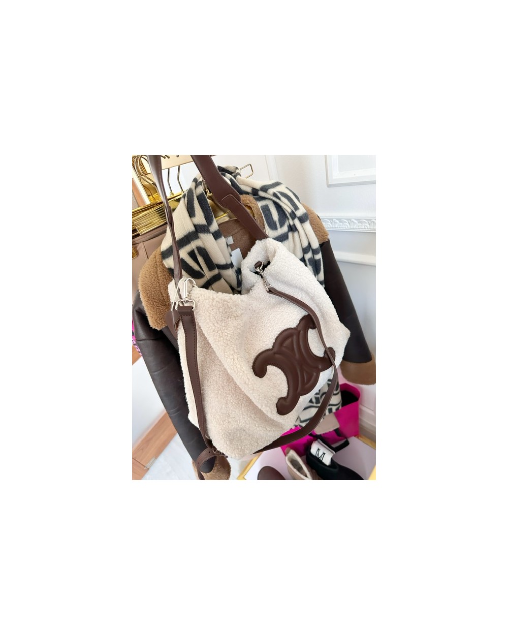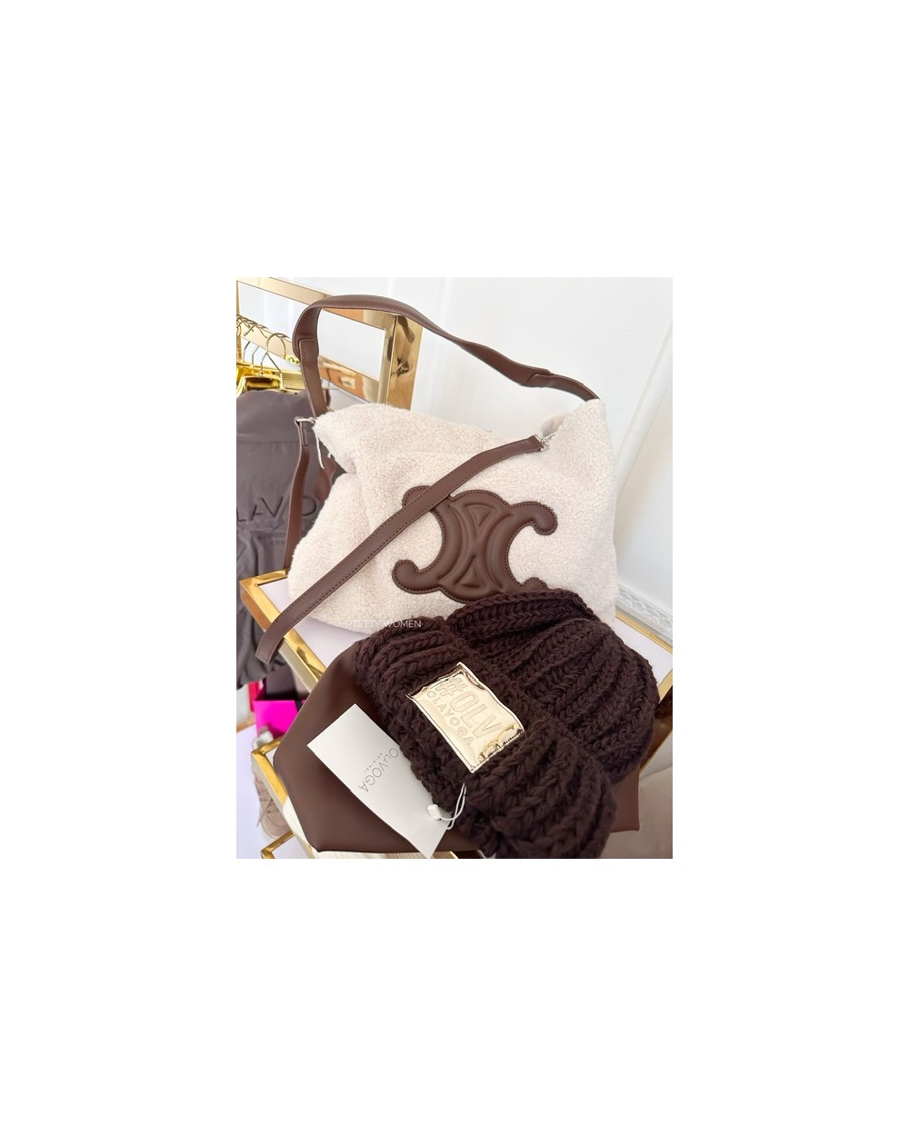 w kolorze ecru z brązem