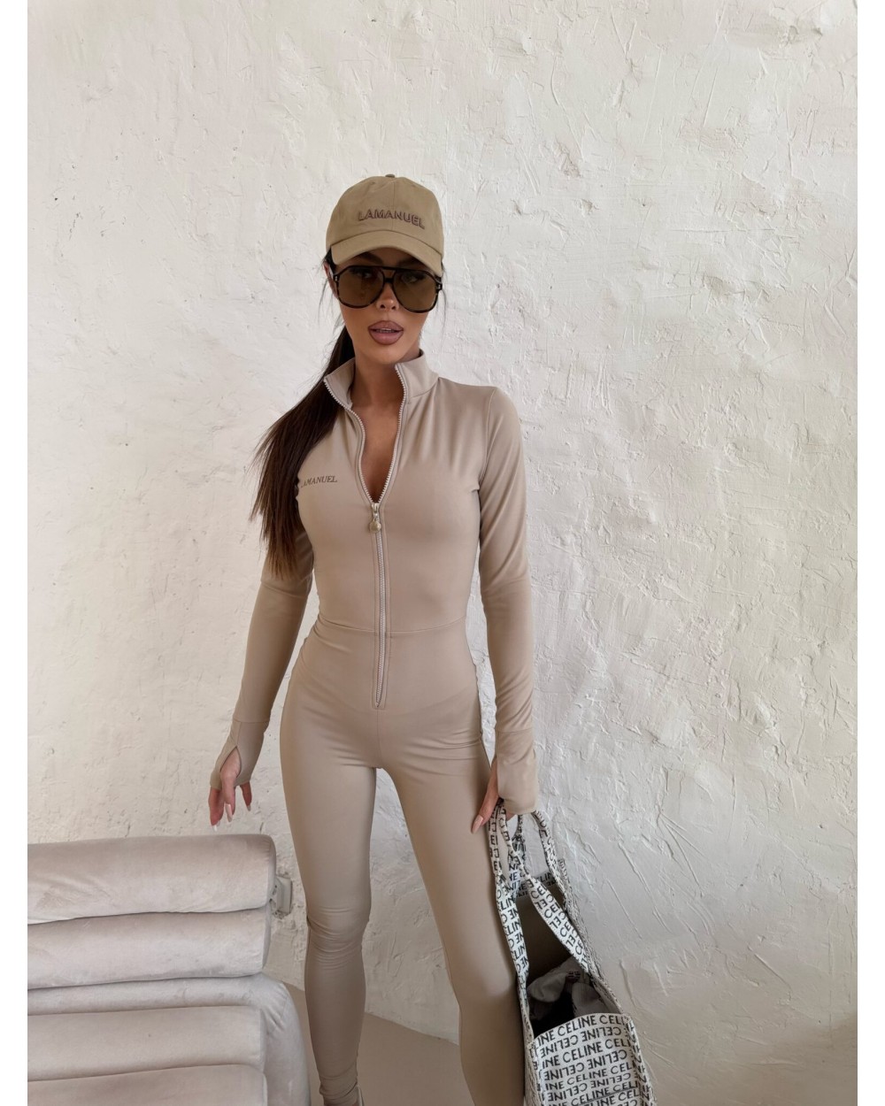 Stylowy i kobiecy kombinezon z lycry, który podkreśla sylwetkę dzięki dopasowanemu krojowi. Wykonany z elastycznego materiału, idealnie przylega do ciała, zapewniając wygodę i swobodę ruchów. Długi rękaw dodaje elegancji, a praktyczny suwak z przodu ułatwia zakładanie i pozwala regulować głębokość dekoltu. Świetnie sprawdzi się zarówno na co dzień, jak i na wieczorne wyjścia. Wystarczy dodać ulubione buty i akcesoria, by stworzyć modny, przyciągający spojrzenia look!