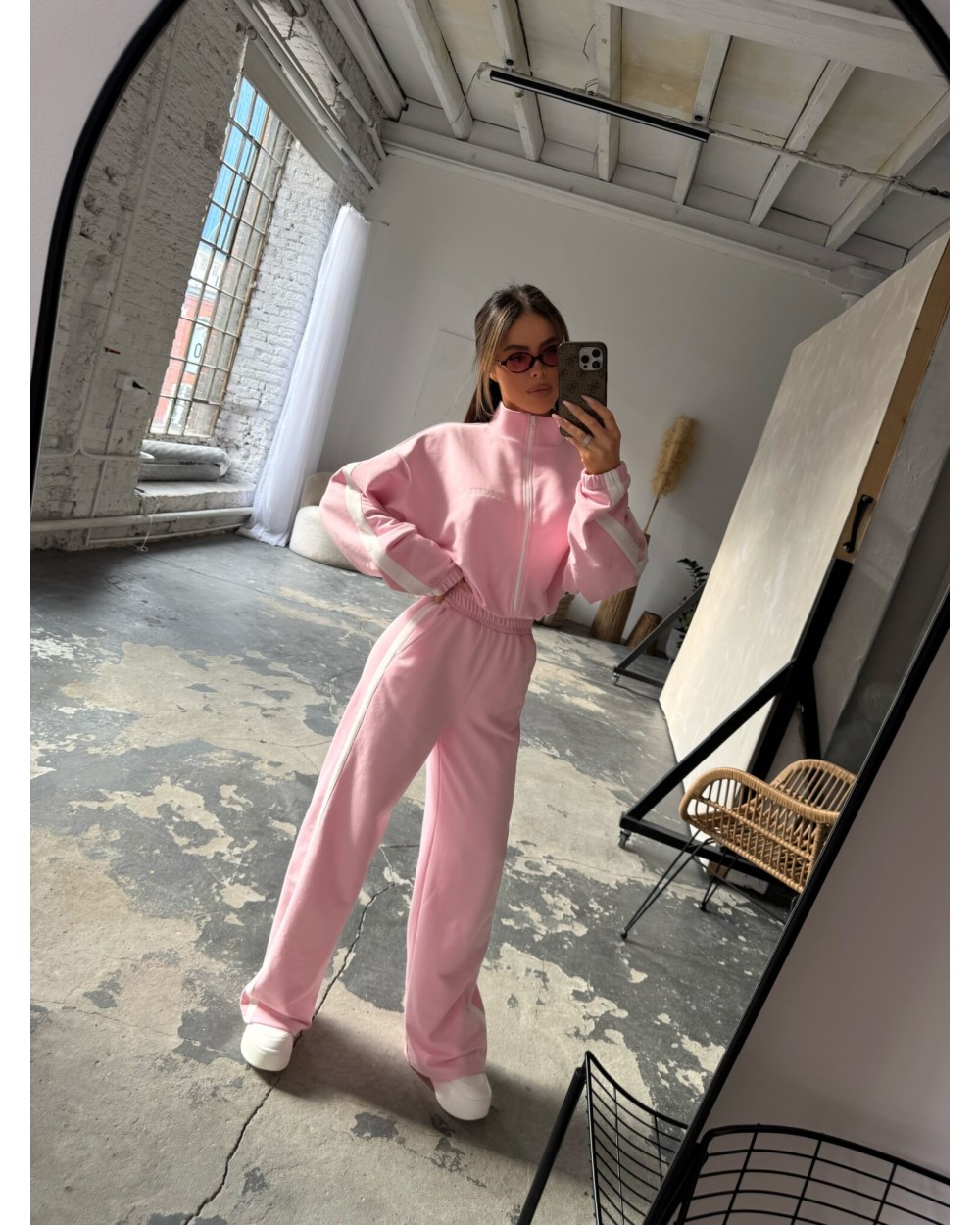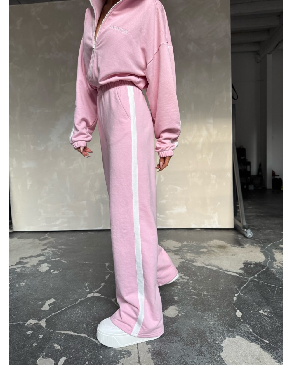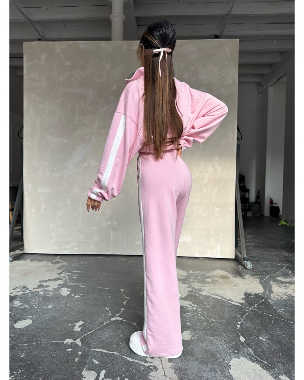 Stylowy design łączy sportową elegancję z subtelnym logo na bluzie. Materiał jest miękki i przyjemny w dotyku, co sprawia, że kombinezon doskonale sprawdzi się na każdą porę roku. Oversize’owy krój dodaje luzu i nowoczesnego wyglądu, a szerokie nogawki z lampasami optycznie wydłużają sylwetkę. Dzięki zamkowi pod szyją można regulować głębokość dekoltu, a elastyczny pas zapewnia idealne dopasowanie.