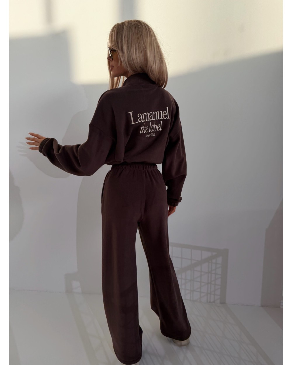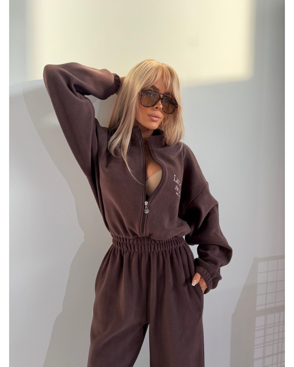 Wykonany z tego samego materiału, który w zeszłym roku wyprzedał się do zera – jeśli znasz, to wiesz. Miękki, sprężysty mikropolar, który otula bez przegrzewania. Daje uczucie komfortu od pierwszego założenia. Zamek pod szyją, stójka, swobodny krój i szeroka nogawka. W pasie elastyczna guma, która nie dzieli sylwetki – wszystko układa się lekko, naturalnie. Haft z przodu i z tyłu dodaje charakteru i zamyka projekt na 100%. Do noszenia solo – z dużymi okularami i sneakersami. Albo warstwowo, pod płaszczem, kiedy wieje. Nie krępuje ruchów, nie traci formy. Działa lepiej niż ulubiony dres, wygląda jak przemyślany look. To nie jest zwykły kombinezon. To najwygodniejsze, co możesz na siebie wrzucić – i nadal wyglądać jak milion monet.