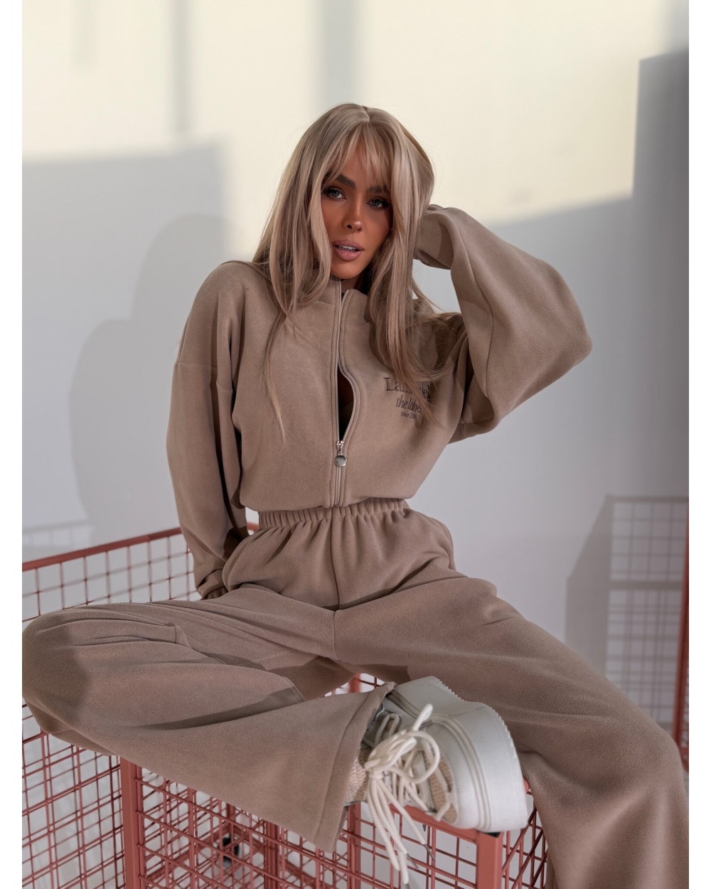 Wykonany z tego samego materiału, który w zeszłym roku wyprzedał się do zera – jeśli znasz, to wiesz. Miękki, sprężysty mikropolar, który otula bez przegrzewania. Daje uczucie komfortu od pierwszego założenia. Zamek pod szyją, stójka, swobodny krój i szeroka nogawka. W pasie elastyczna guma, która nie dzieli sylwetki – wszystko układa się lekko, naturalnie. Haft z przodu i z tyłu dodaje charakteru i zamyka projekt na 100%. Do noszenia solo – z dużymi okularami i sneakersami. Albo warstwowo, pod płaszczem, kiedy wieje. Nie krępuje ruchów, nie traci formy. Działa lepiej niż ulubiony dres, wygląda jak przemyślany look. To nie jest zwykły kombinezon. To najwygodniejsze, co możesz na siebie wrzucić – i nadal wyglądać jak milion monet.