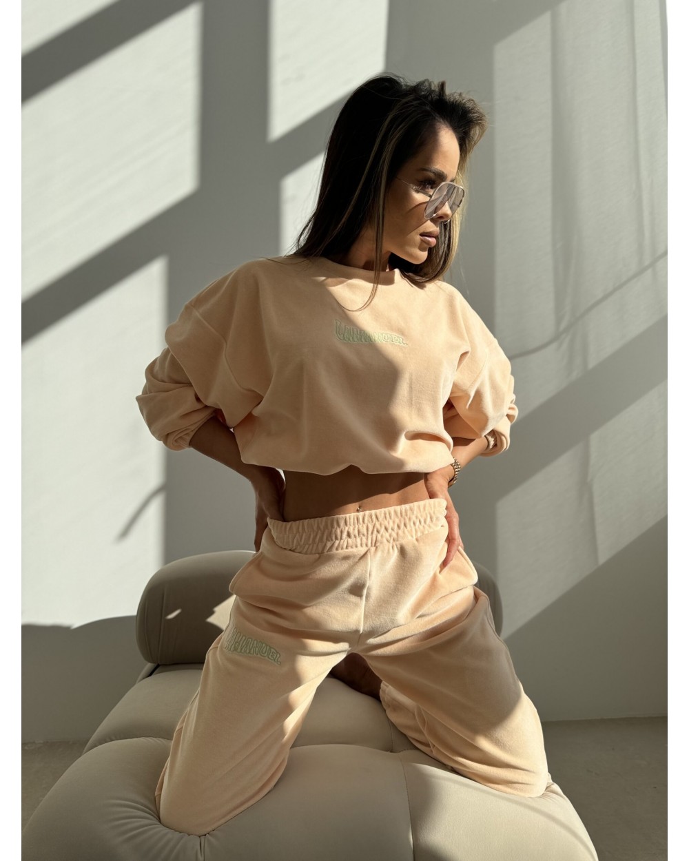 Nowy komplet welurowy damski. Bluzę bez kaptura i spodnie z szeroką gumą w pasie łączy niezwykle delikatny i przyjemny w dotyku welur, nadając Twojemu outfitowi wyjątkowy charakter. Spodnie z szeroką gumą w pasie zapewniają doskonałe dopasowanie oraz wygodę noszenia. Delikatny welur otula ciało, tworząc efektowny, a zarazem komfortowy zestaw. To idealna propozycja na wyjścia czy relaks w domowym zaciszu.