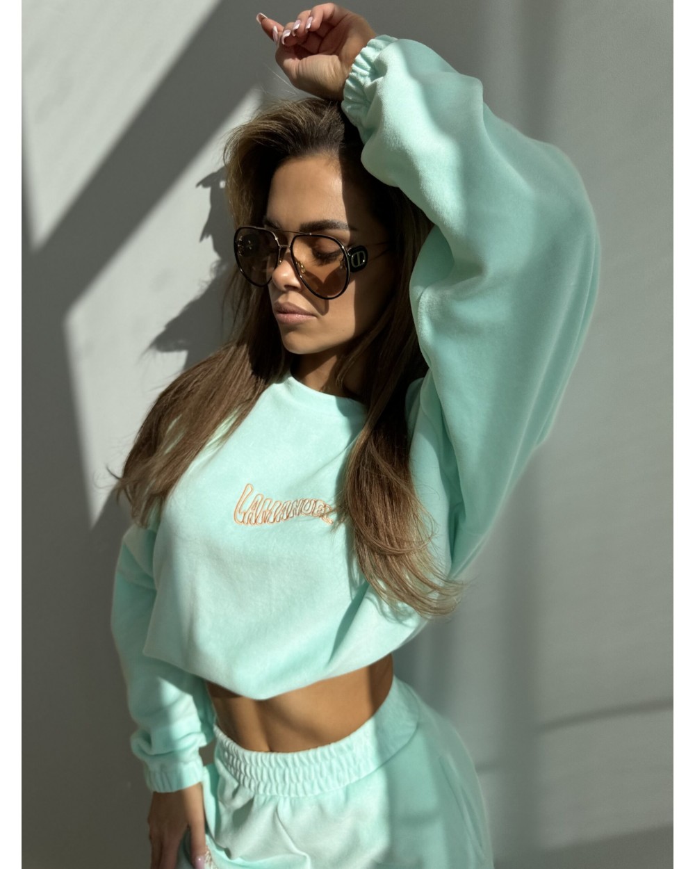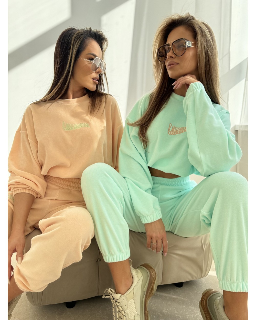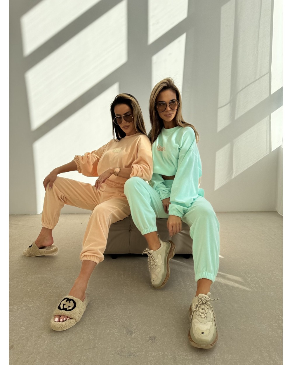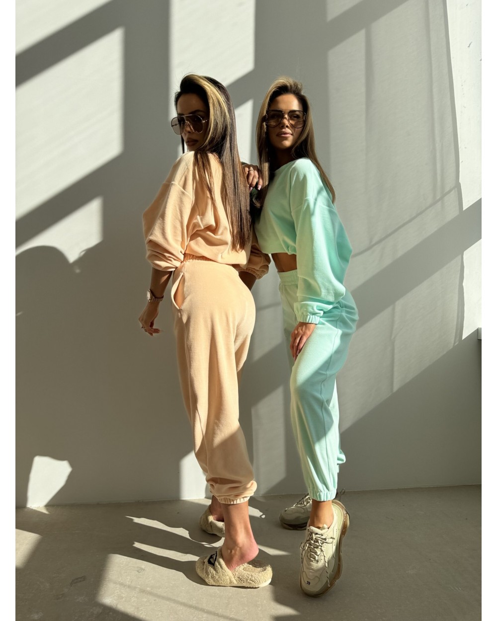 Nowy komplet welurowy damski. Bluzę bez kaptura i spodnie z szeroką gumą w pasie łączy niezwykle delikatny i przyjemny w dotyku welur, nadając Twojemu outfitowi wyjątkowy charakter. Spodnie z szeroką gumą w pasie zapewniają doskonałe dopasowanie oraz wygodę noszenia. Delikatny welur otula ciało, tworząc efektowny, a zarazem komfortowy zestaw. To idealna propozycja na wyjścia czy relaks w domowym zaciszu.