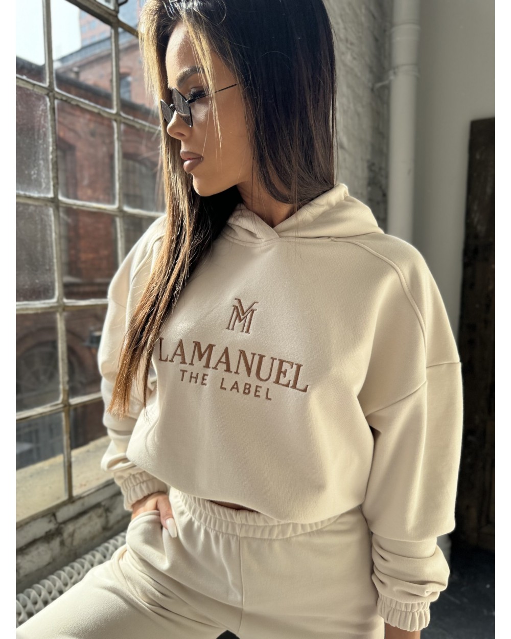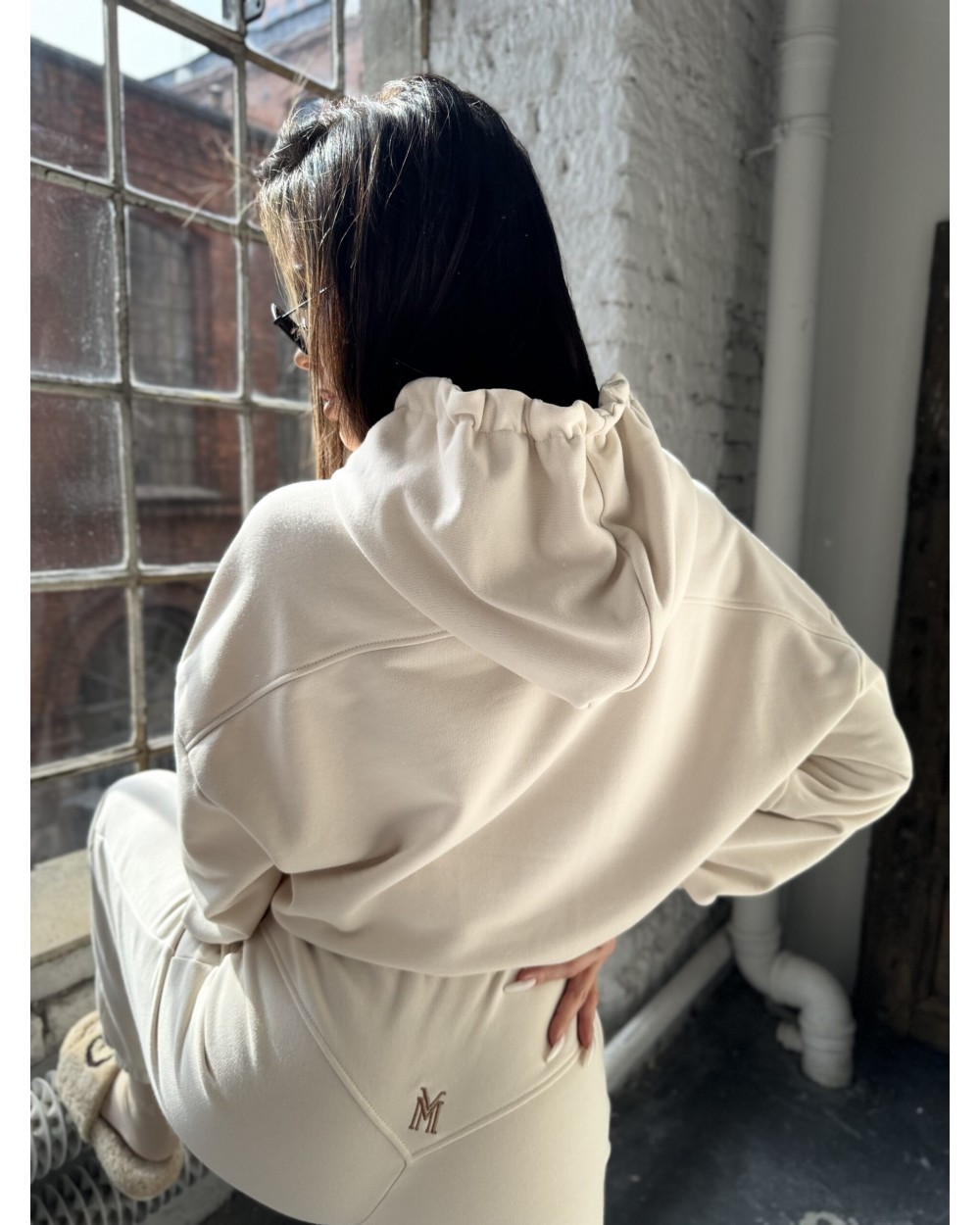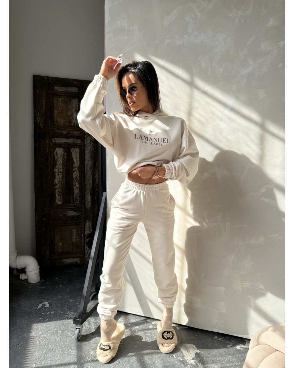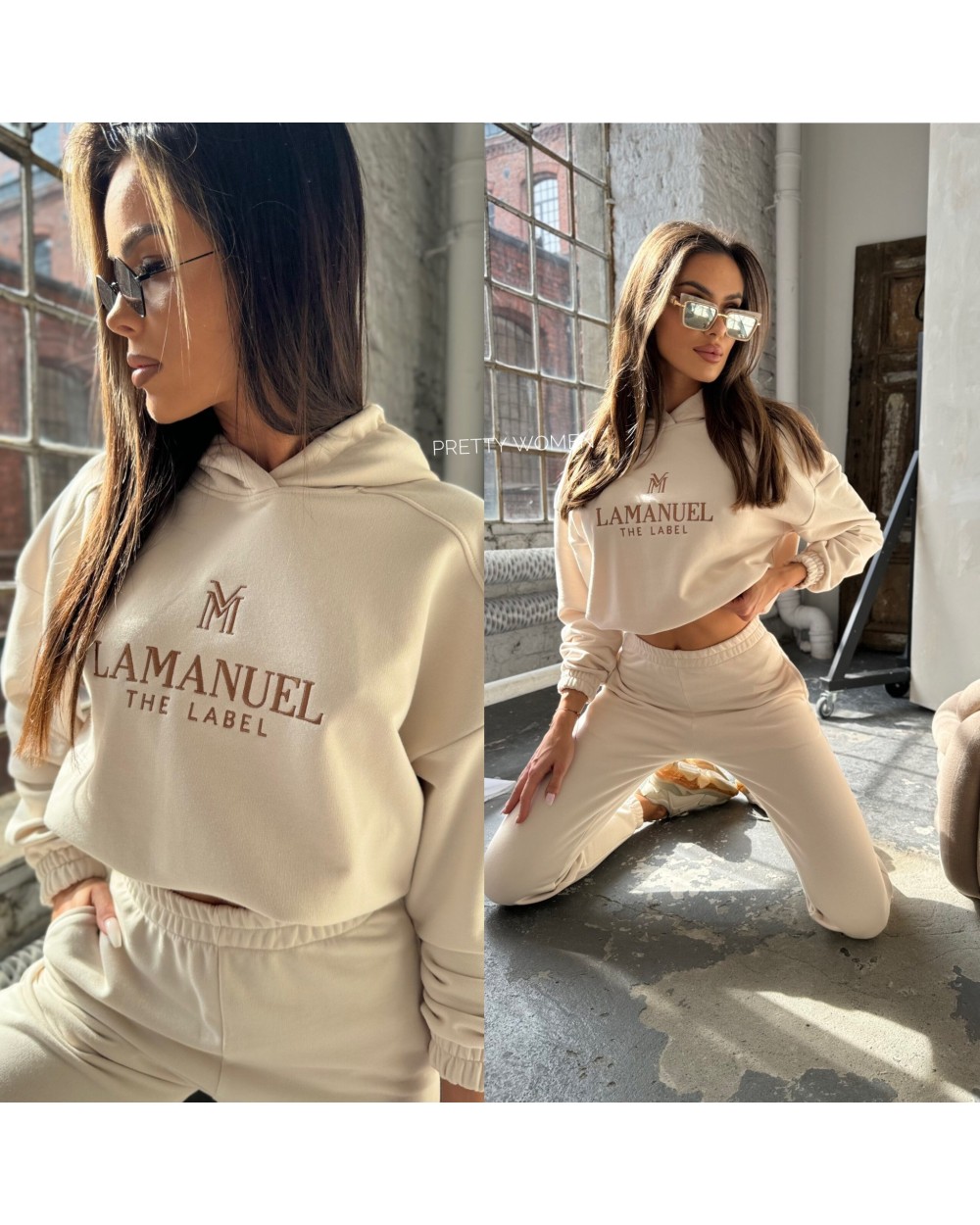 Komplet dresowy damski składający się z bluzy z ciekawym kapturem oraz spodni. Bluza z kapturem jest doskonałą kombinacją funkcjonalności i modowego stylu. Wykonana z miękkiego materiału, ten model zapewnia ciepło i wygodę w chłodniejsze dni, a kaptur dodaje mu sportowego charakteru. Spodnie z kieszeniami są praktycznym uzupełnieniem tego zestawu. Wygodne, elastyczne i wykonane z wysokiej jakości materiału, zapewniają one swobodę ruchu i komfort noszenia przez cały dzień. Idealny zestaw ma wiosnę