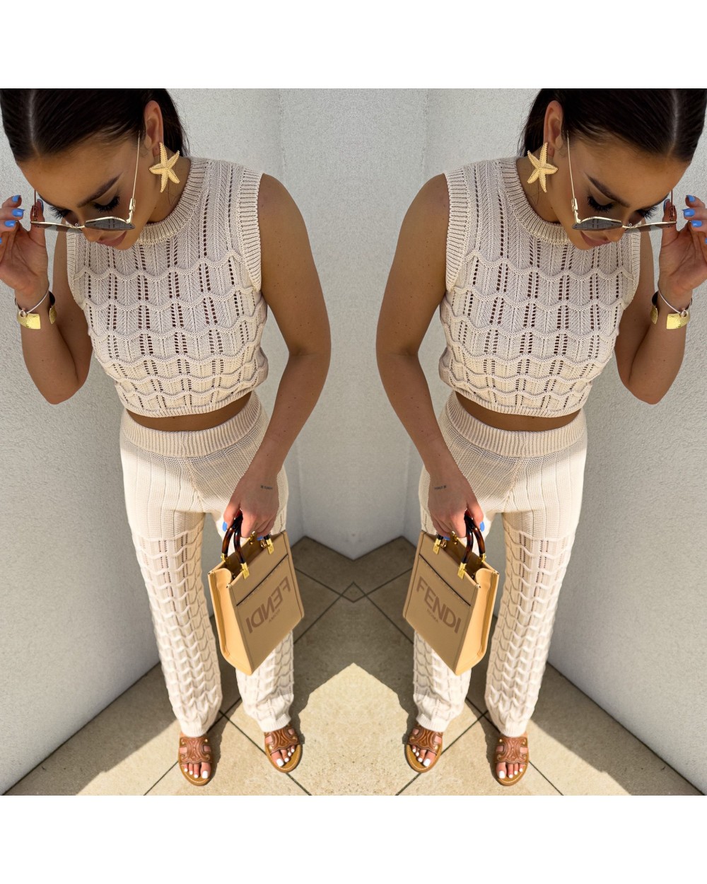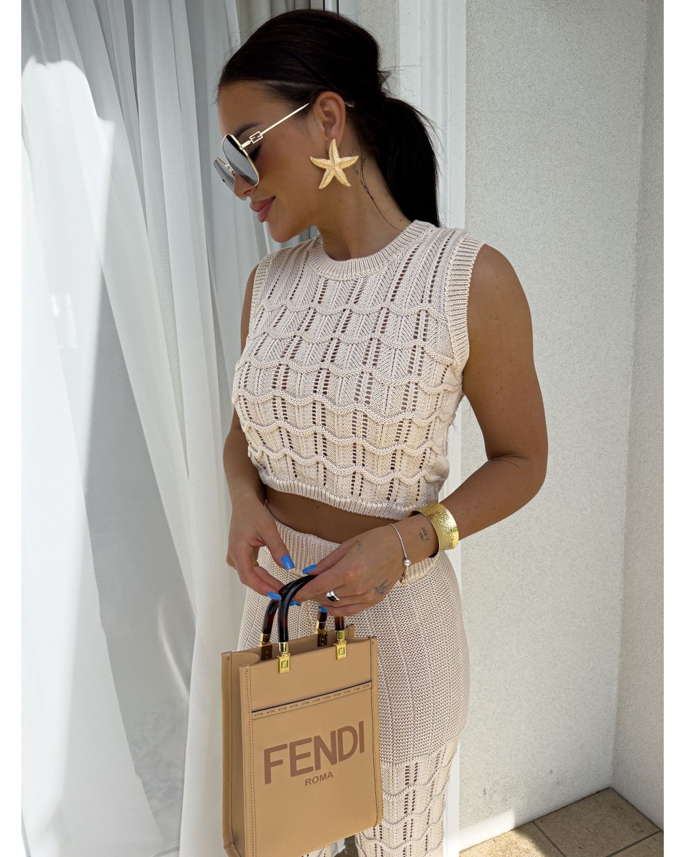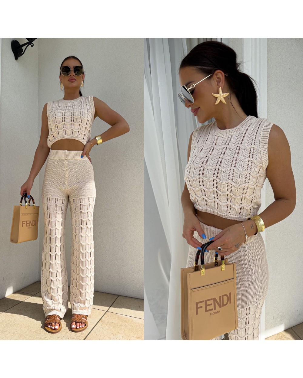 Komplet Santorini to przepiękny top na ramiączkach plus spodnie.