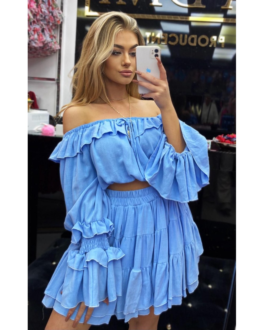 Obłędny 3 częściowy komplet składający się z spódnico spodenek topu oraz bluzki hiszpanki
