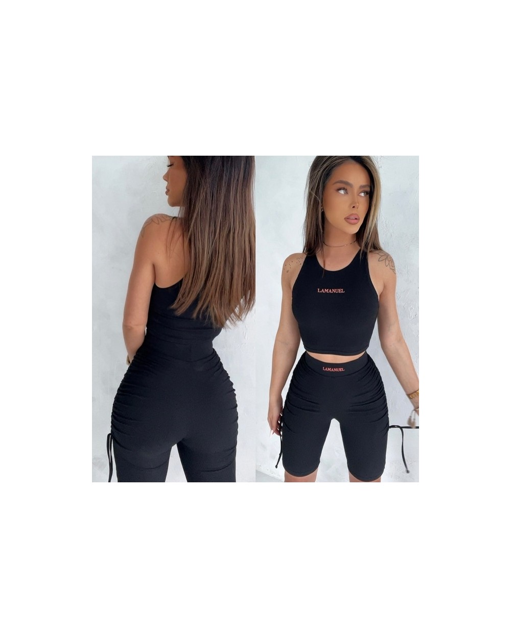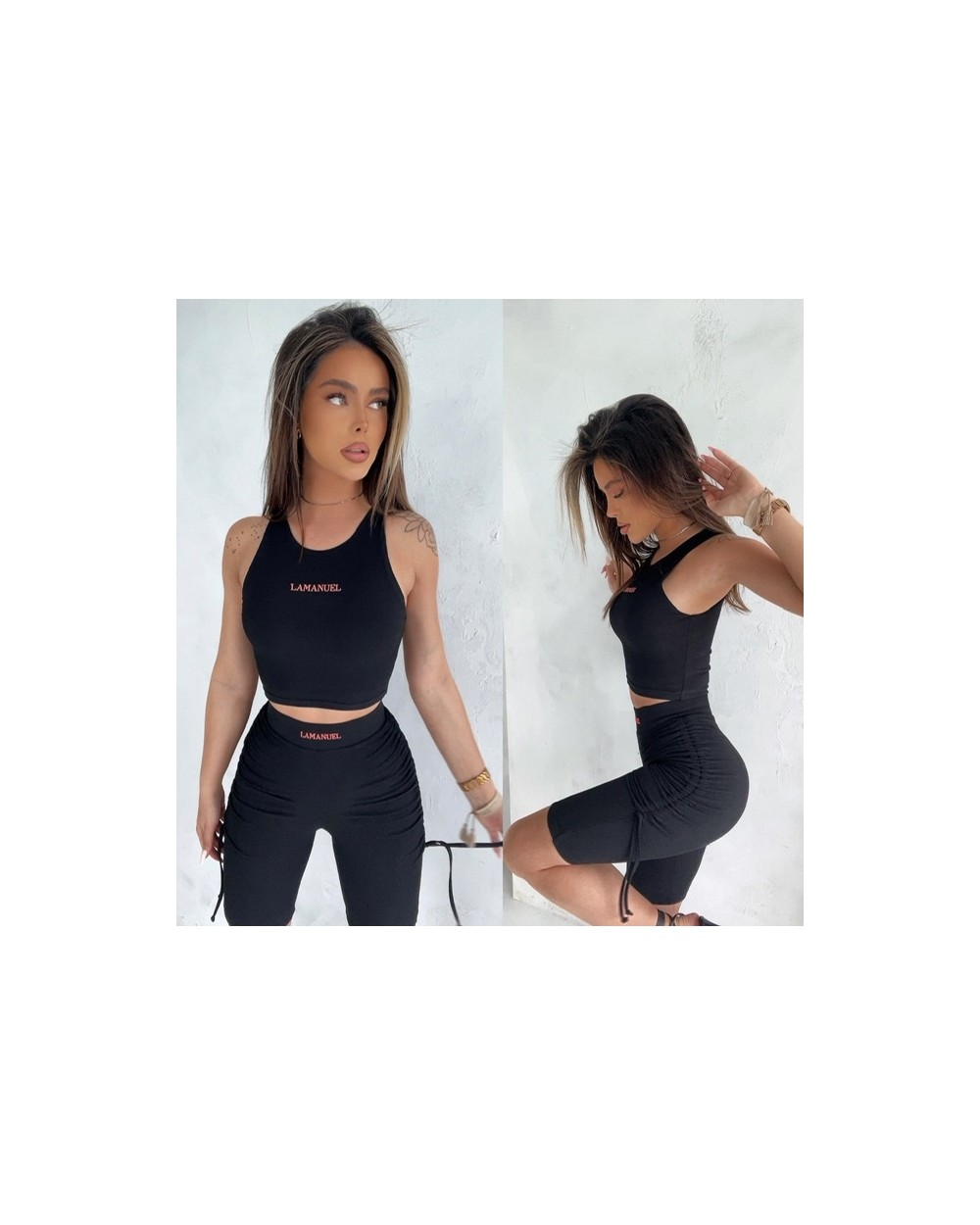 Komplet damski składający się z tank topu oraz kolarek to propozycja dla kobiet ceniących sobie komfort i oryginalny styl. Wykonany z podwónej warstwy, wysokiej jakości materiału prążkowanego, komplet doskonale dopasowuje się do sylwetki, podkreślając jej atuty. Komplet składa się z topu na ramiączkach z logo marki oraz kolarek z marszczeniem. Logo marki dodaje mu charakteru i sprawia, że prezentuje się bardzo oryginalnie. Set możesz nosić razem lub osobno – basicowy fason ubrań pozwala na wykorzystanie w wielu różnych stylizacjach. Można go nosić na wiele różnych okazji – zarówno na co dzień, jak i na wyjścia czy imprezy ze znajomymi.