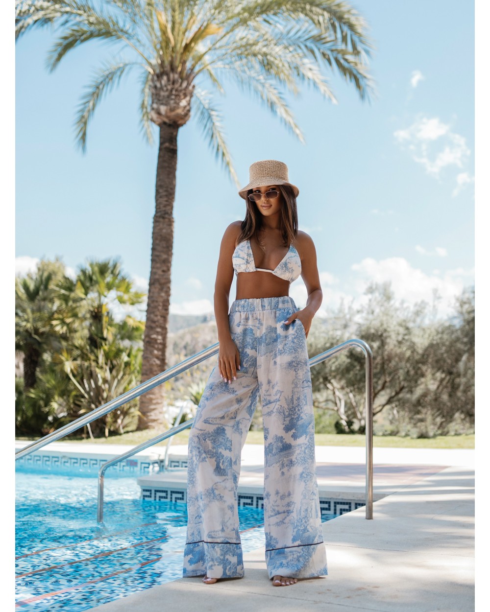 Lniany komplet składający się z marynarki i spódniczko spodenek. Marynarka zapinana na guzik, obowiązkowo wszyte poduszki w ramionach. Spódniczko spodenki posiadają wszytą szeroką gumę w pasie.  Materiał bardzo przewiewny, nieprześwitujący.