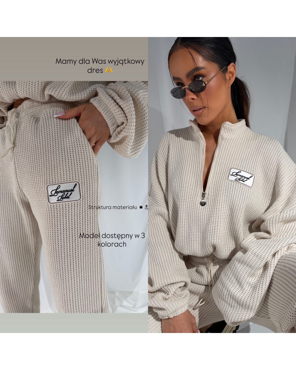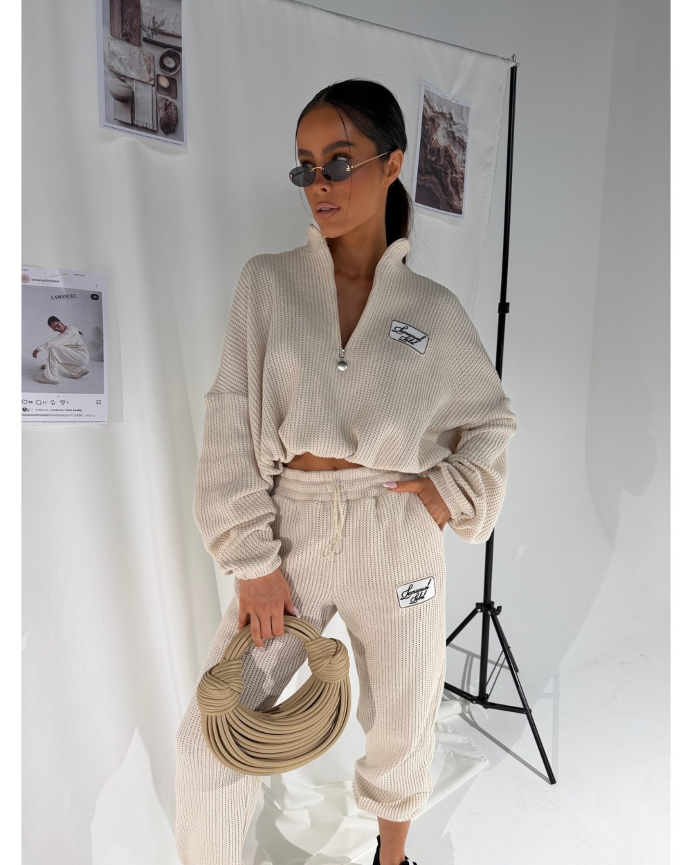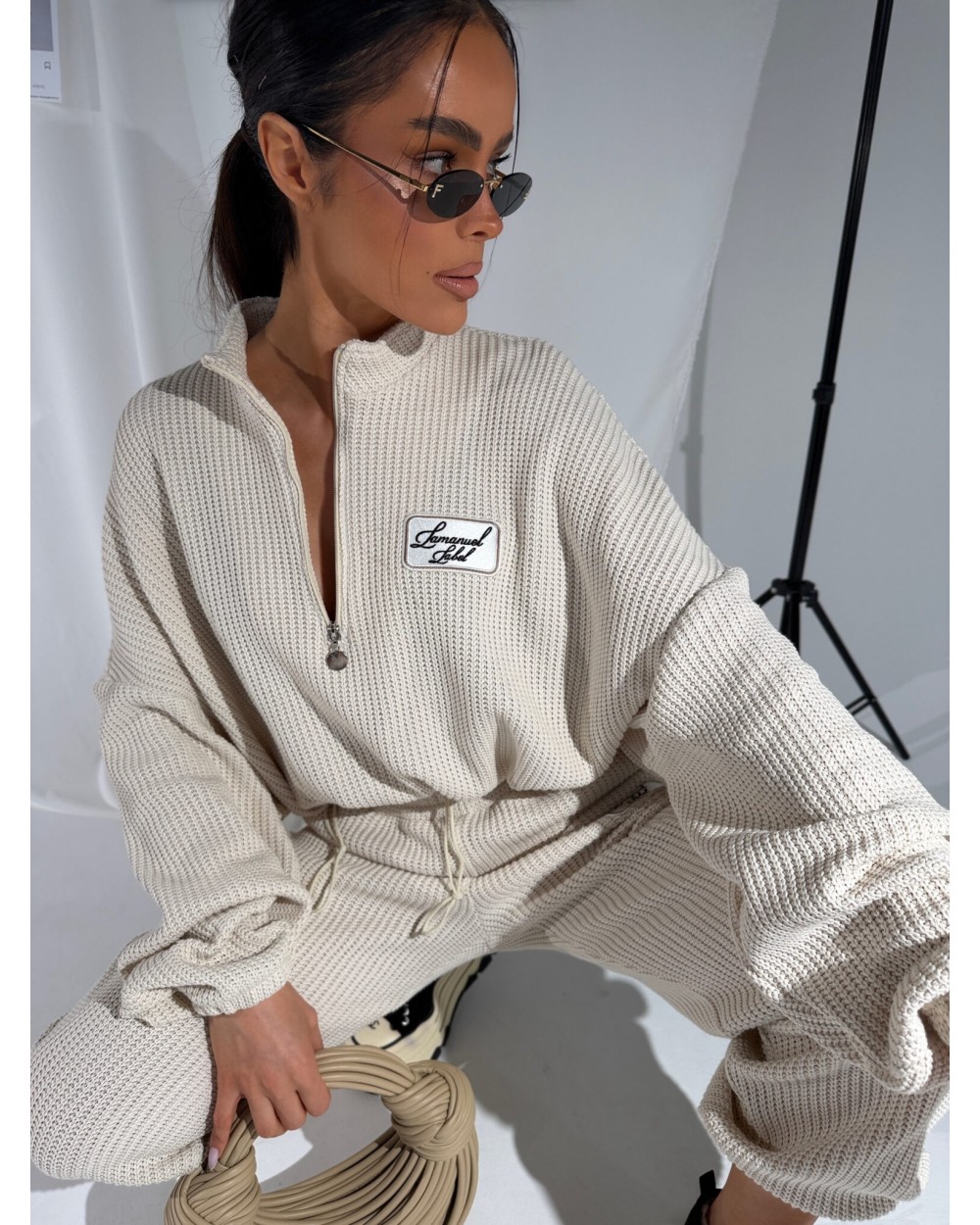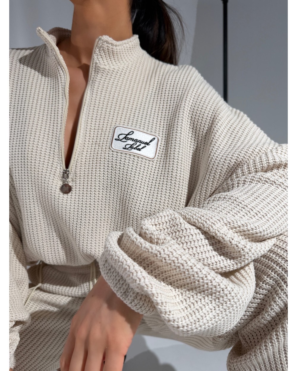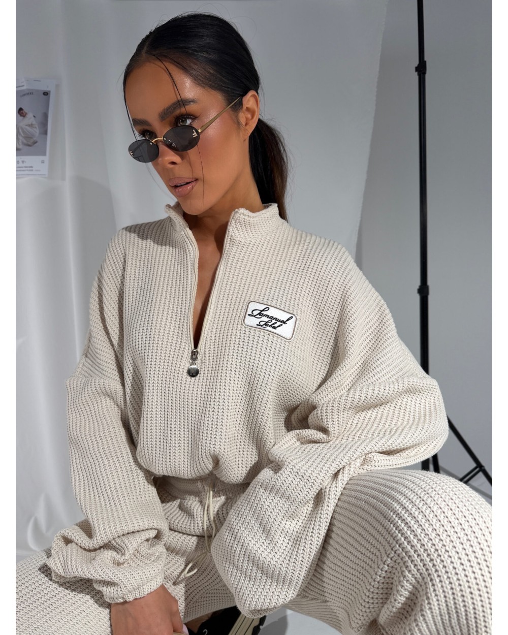 Luźna bluza z grubym, miękkim splotem, który od razu czuć pod palcami. Wysoka stójka zapinana na zamek pozwala nosić ją na różne sposoby – pod szyję albo rozpiętą, na luzie. Dół regulowany sznurkiem – można zebrać ją w talii i nadać sylwetce zupełnie inny kształt albo zostawić luźną. Rękawy z mocnym przeskalowaniem i długim ściągaczem dodają charakteru. Naszywka z logo na piersi przyciąga uwagę, ale nie dominuje. Całość robi efekt cozy, ale w bardzo świadomym, miejskim wydaniu.