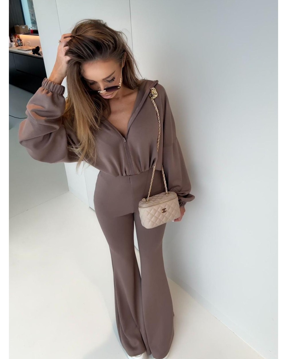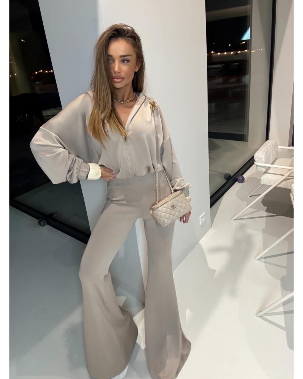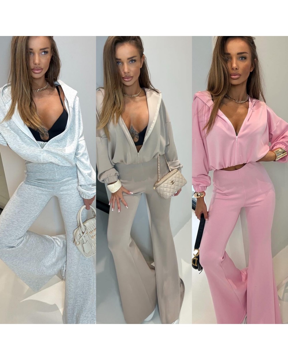 Mega komplet wiskozowy! Spodnie szerokie dzwony, do tego bluza z kapturem na zamek.