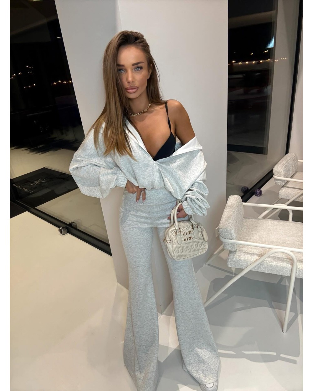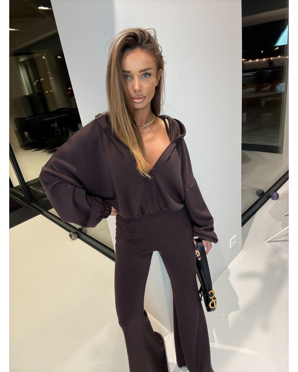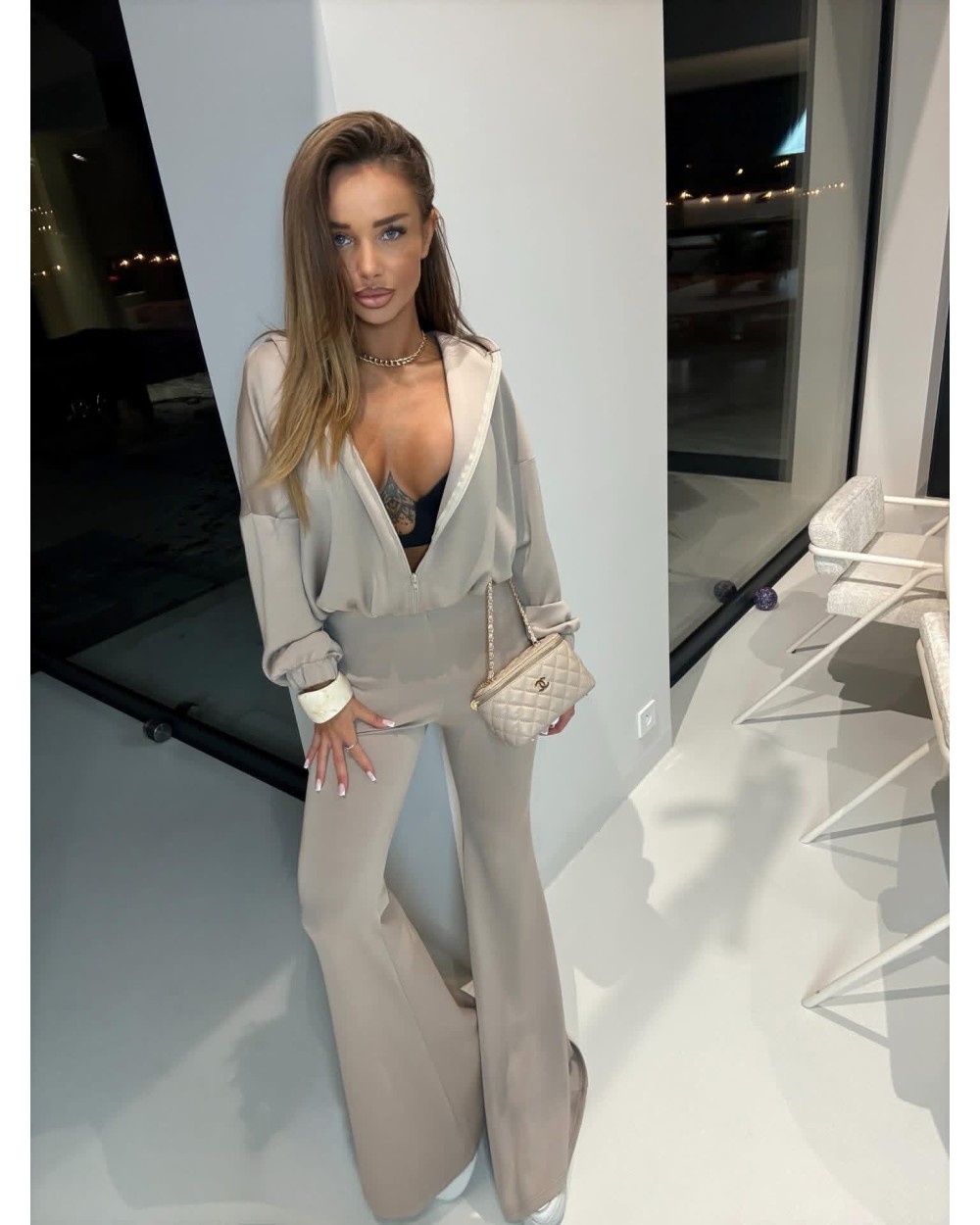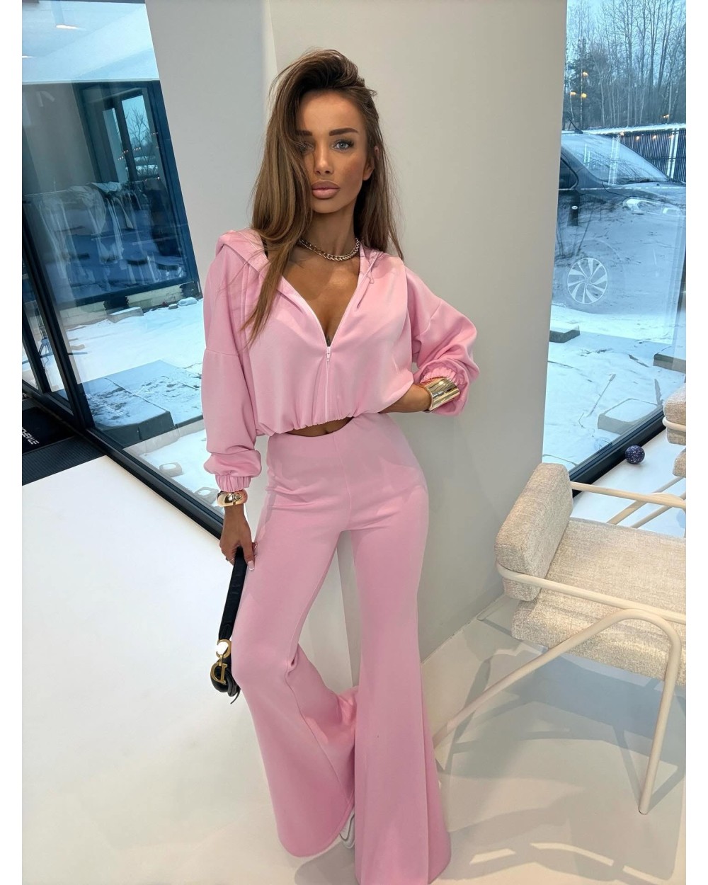 Mega komplet wiskozowy! Spodnie szerokie dzwony, do tego bluza z kapturem na zamek.