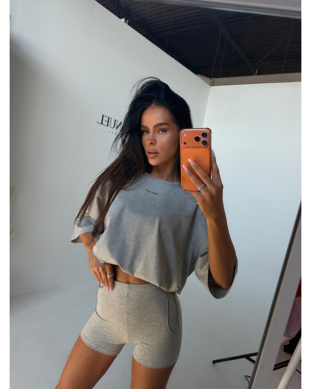 Czysta forma, która daje pełną swobodę stylizacji. T-shirt o luźnym kroju można regulować w talii, dzięki czemu zmienia swój charakter – od oversize’u po bardziej dopasowaną linię. Minimalistyczne wykończenie i delikatne logo podkreślają estetykę premium. Kolarki idealnie przylegają do sylwetki, eksponując nogi i zapewniając wygodę przez cały dzień. Zestaw, który wygląda lekko, nowocześnie i zawsze na czasie.