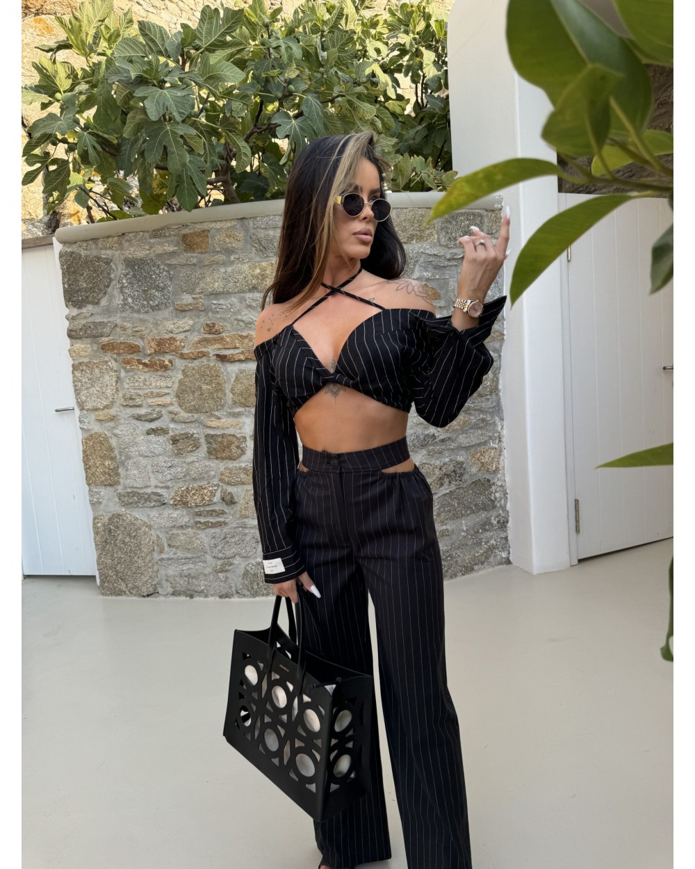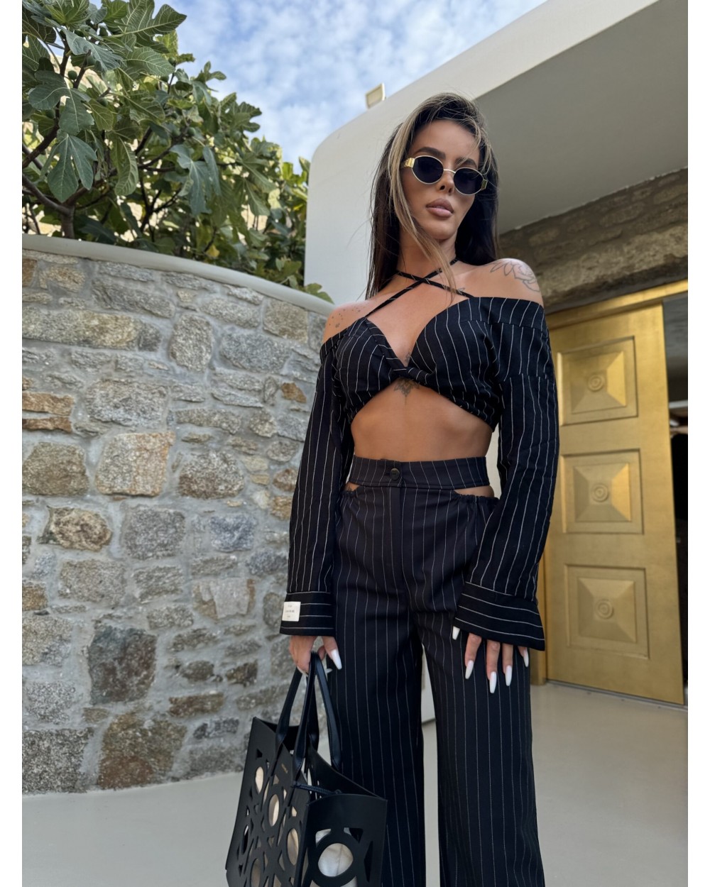 Krótka koszula crop top z długim rękawem, idealna na lato. Wyjątkowy design ze sznurkami przechodzącymi od dekoltu po szyję dodaje jej charakteru i oryginalności. Model w paski, wykonany z lekkiego, przewiewnego materiału, zapewnia komfort noszenia nawet w upalne dni. Doskonale komponuje się zarówno ze spodniami ZUMA, jeansami, jak i spódnicami, tworząc modny i stylowy look na różne okazje.