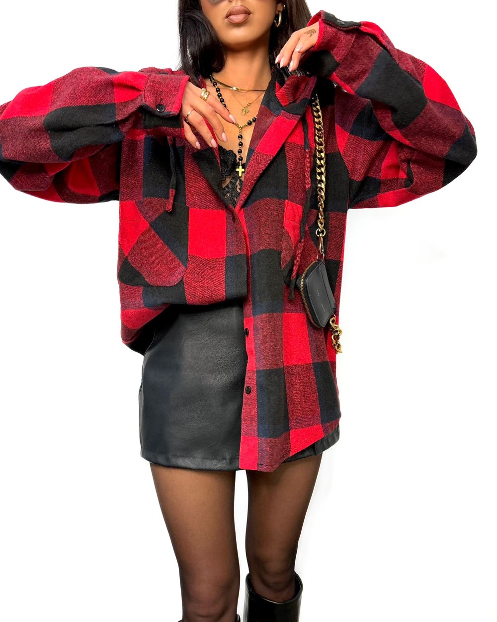Stylowa koszula w kratę o fasonie oversize zapinana na guziki.
