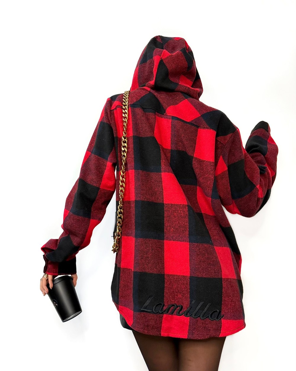 Stylowa koszula w kratę o fasonie oversize zapinana na guziki.