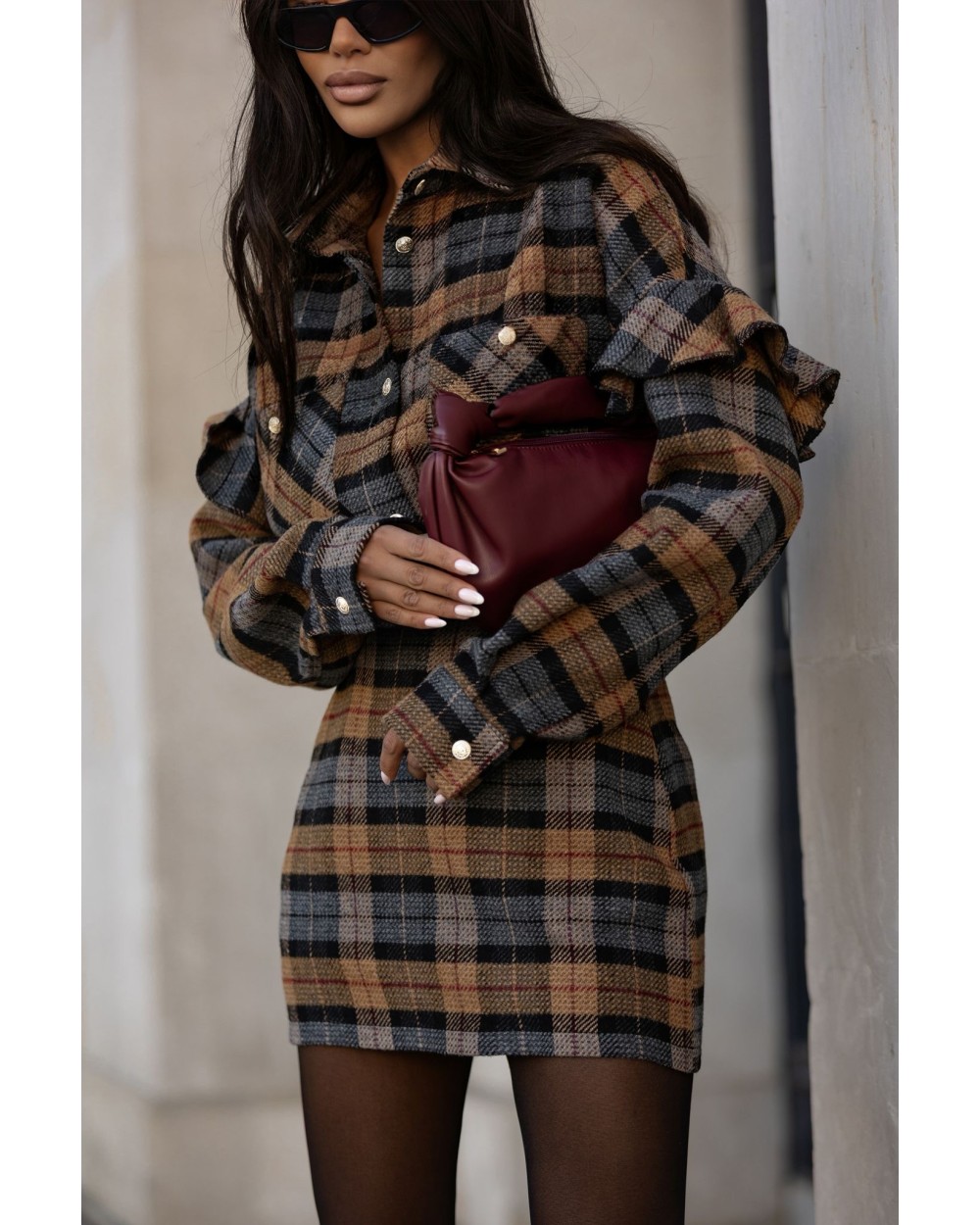 Koszula to świetne dopełnienie stylizacji. Doskonale zaprezentuje się w zestawieniu z spódniczką. - kraciasty wzór - wełna w składzie - produkcja polska - krój oversize - zapięcie regulowane na guziczki