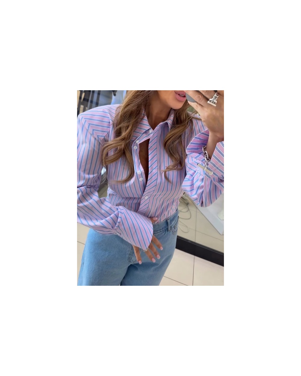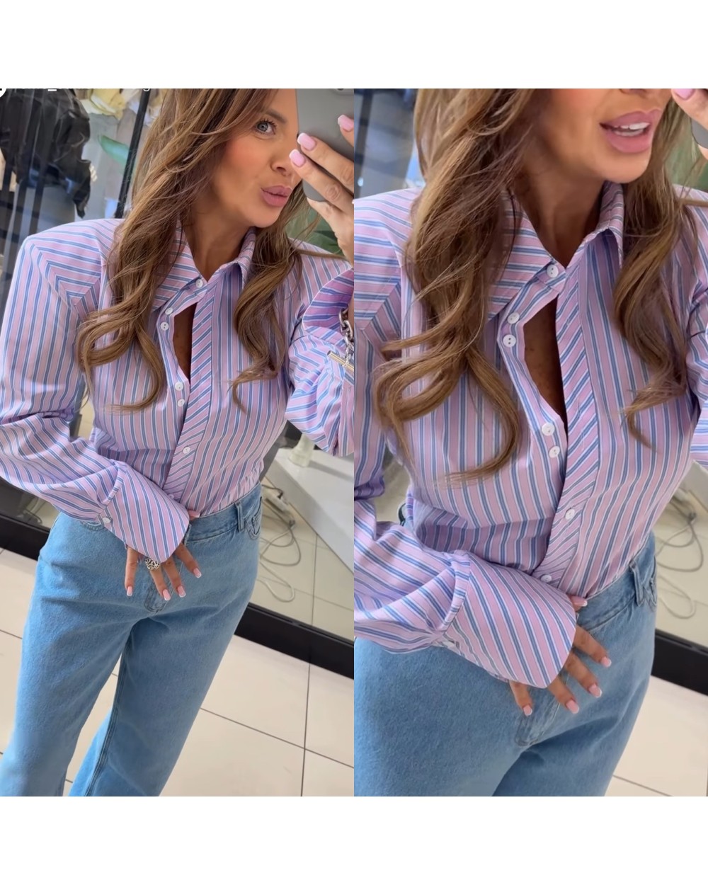 - W pasie sznurek pozwalający dowolnie taliować koszulę