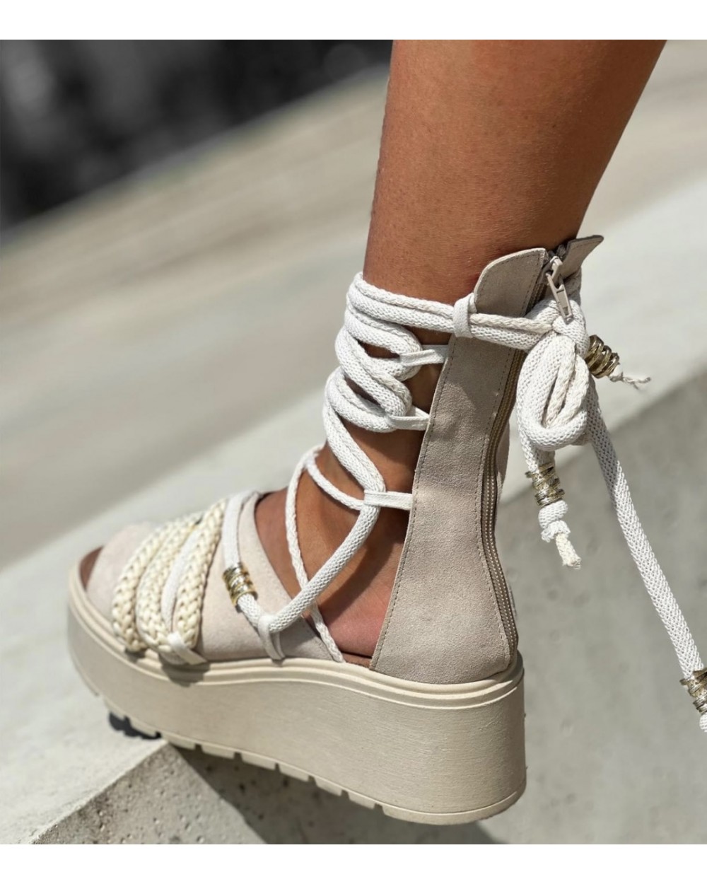 SKÓRZANE SANDAŁY ▪️IXIH BEZOWE