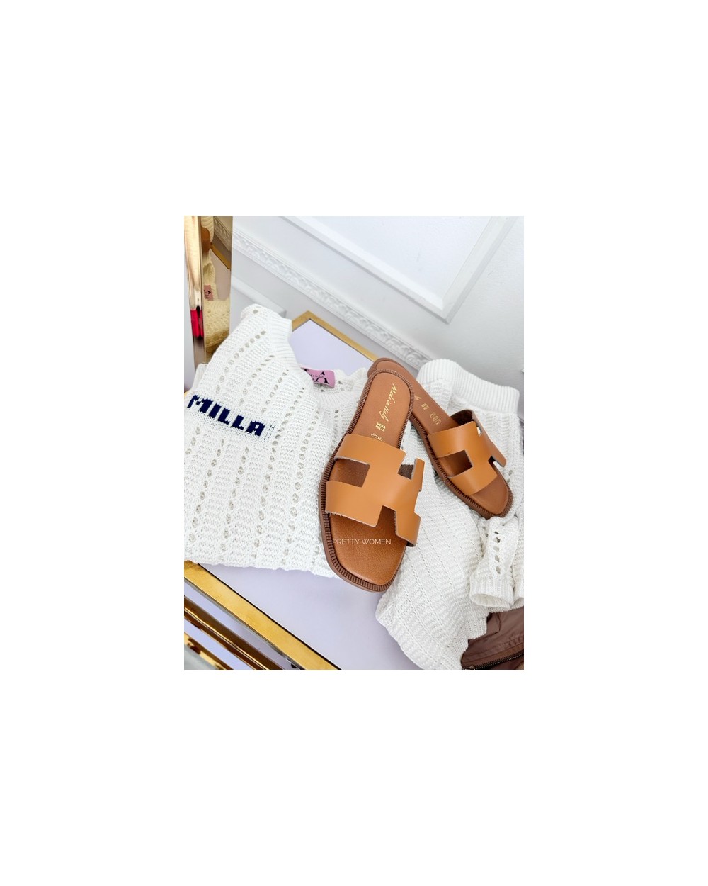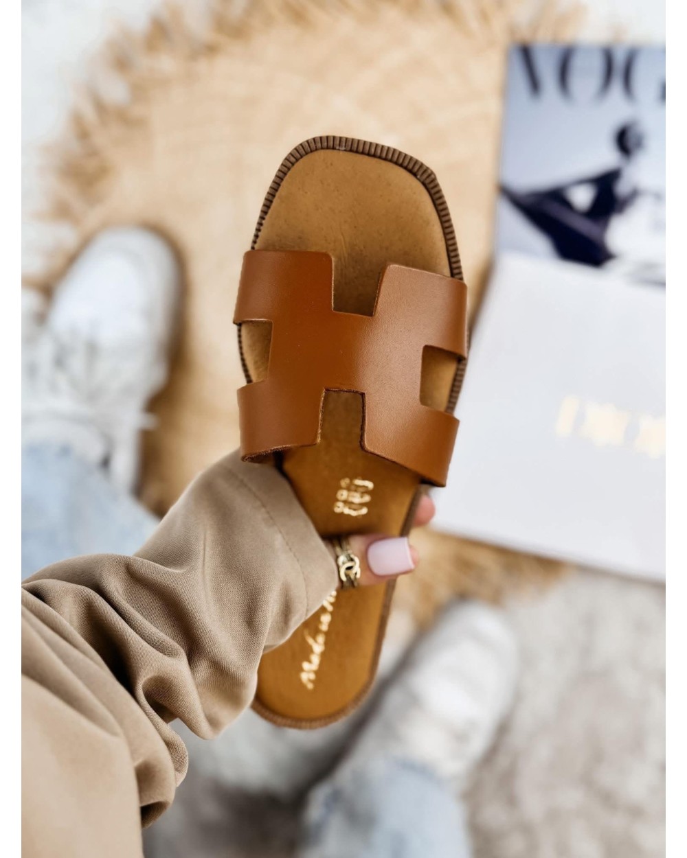SKÓRZANE KLAPKI HH STYL ▪️Brąz