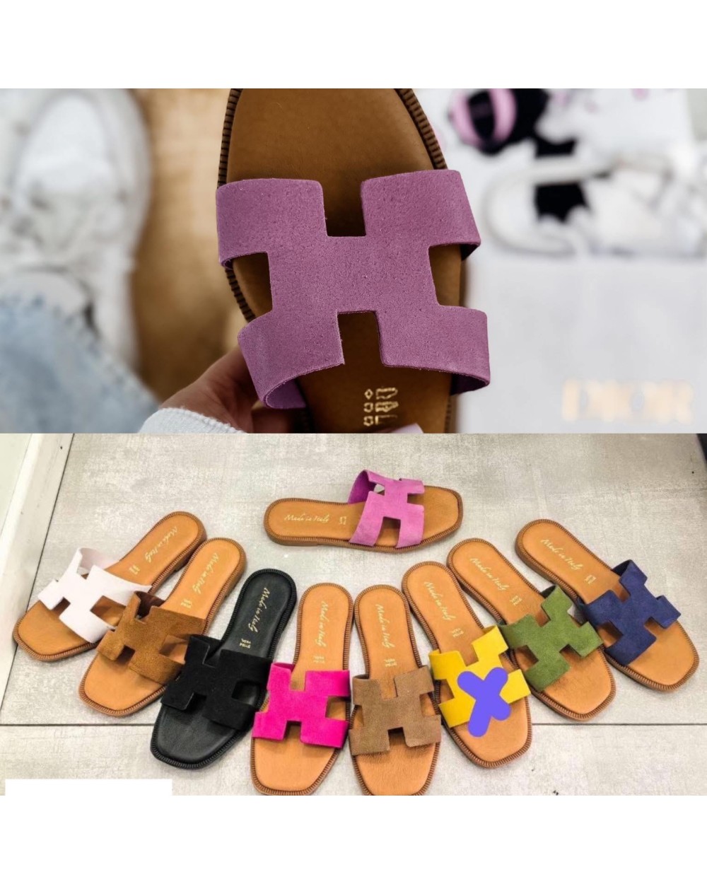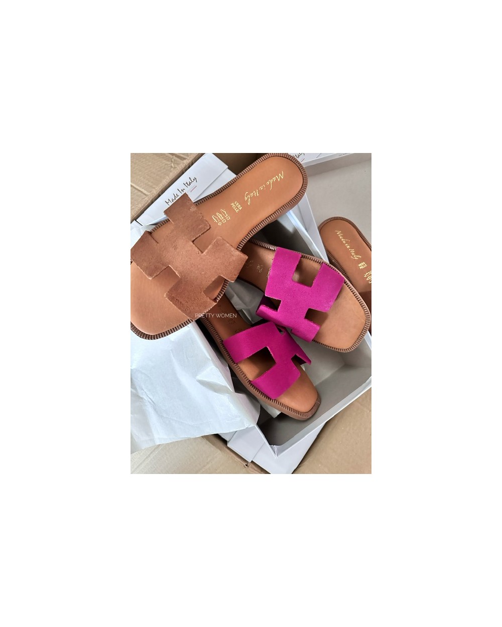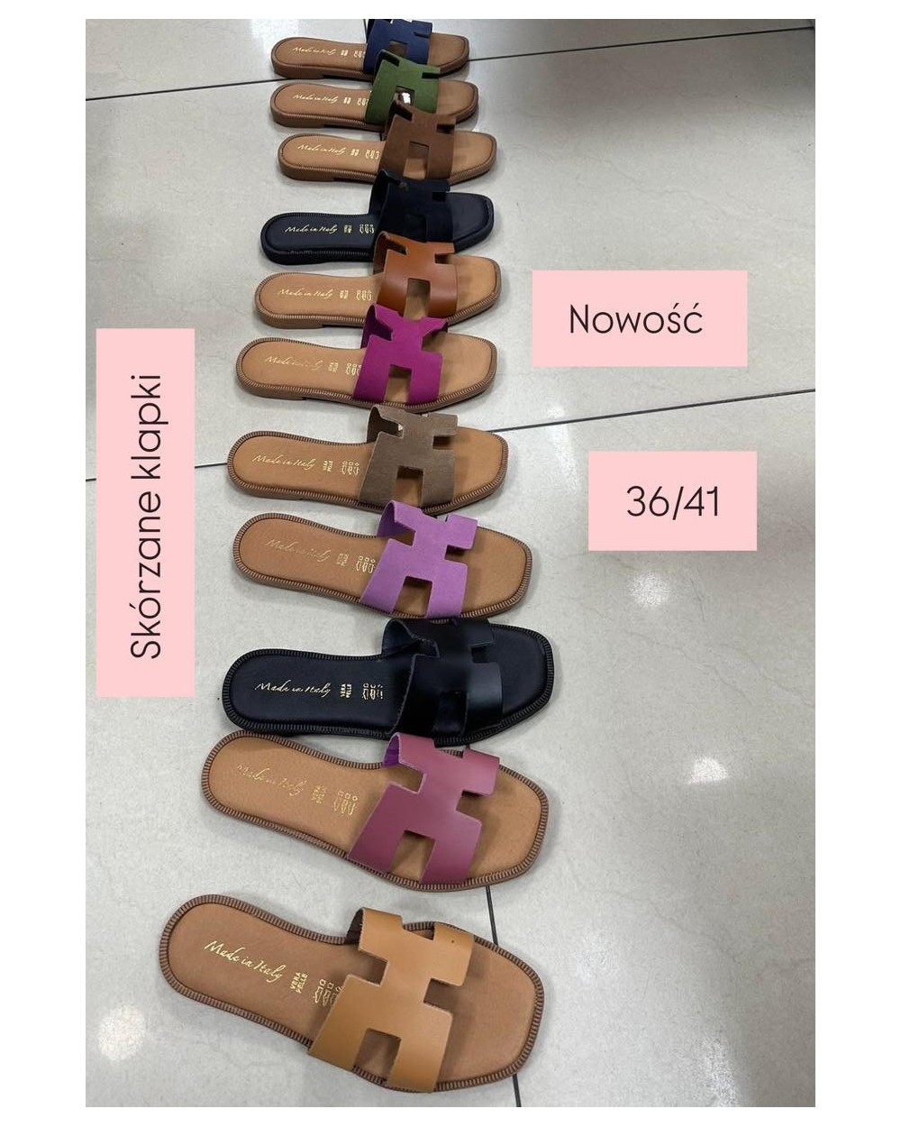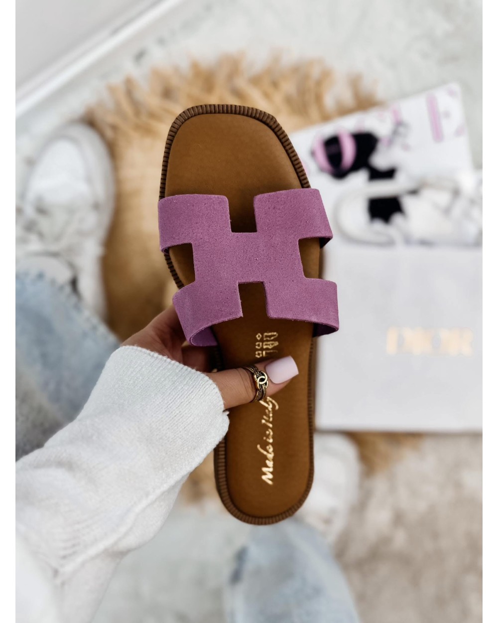 SKÓRZANE KLAPKI HH STYL ▪️RÓŻ ZAMSZ