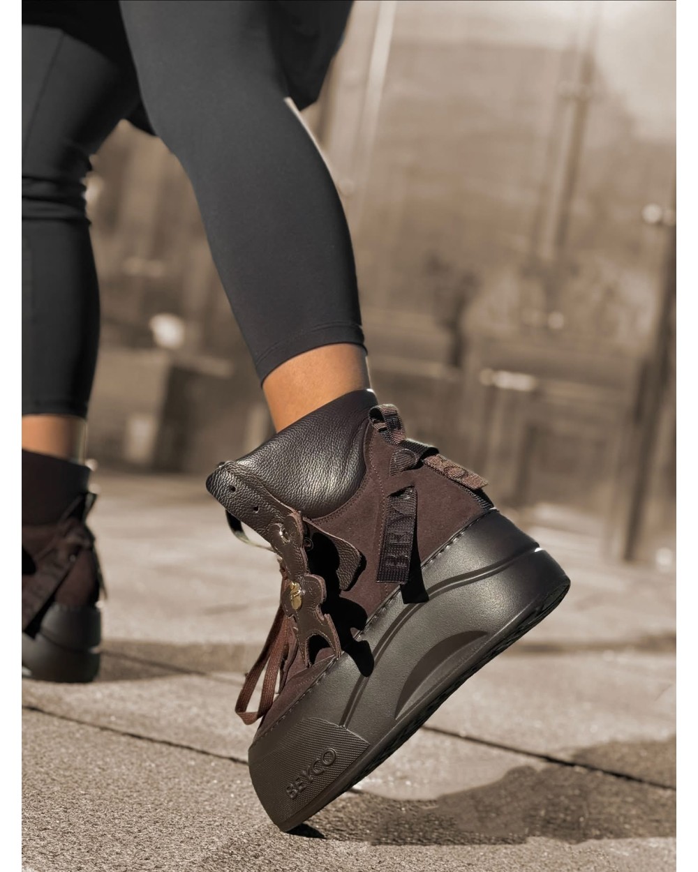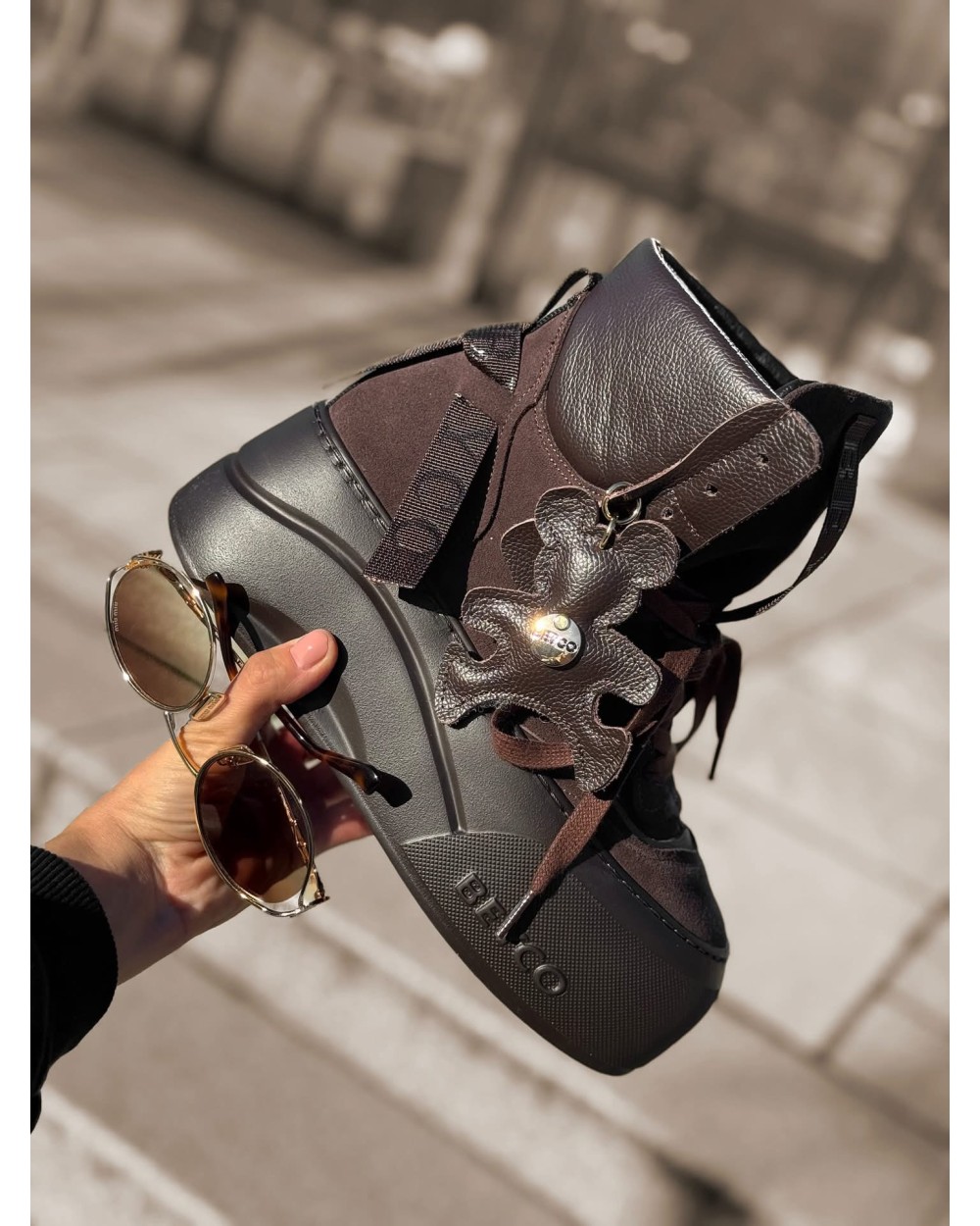 SKÓRZANE SNAKERSY Z MISIEM ▪️czekoladowe