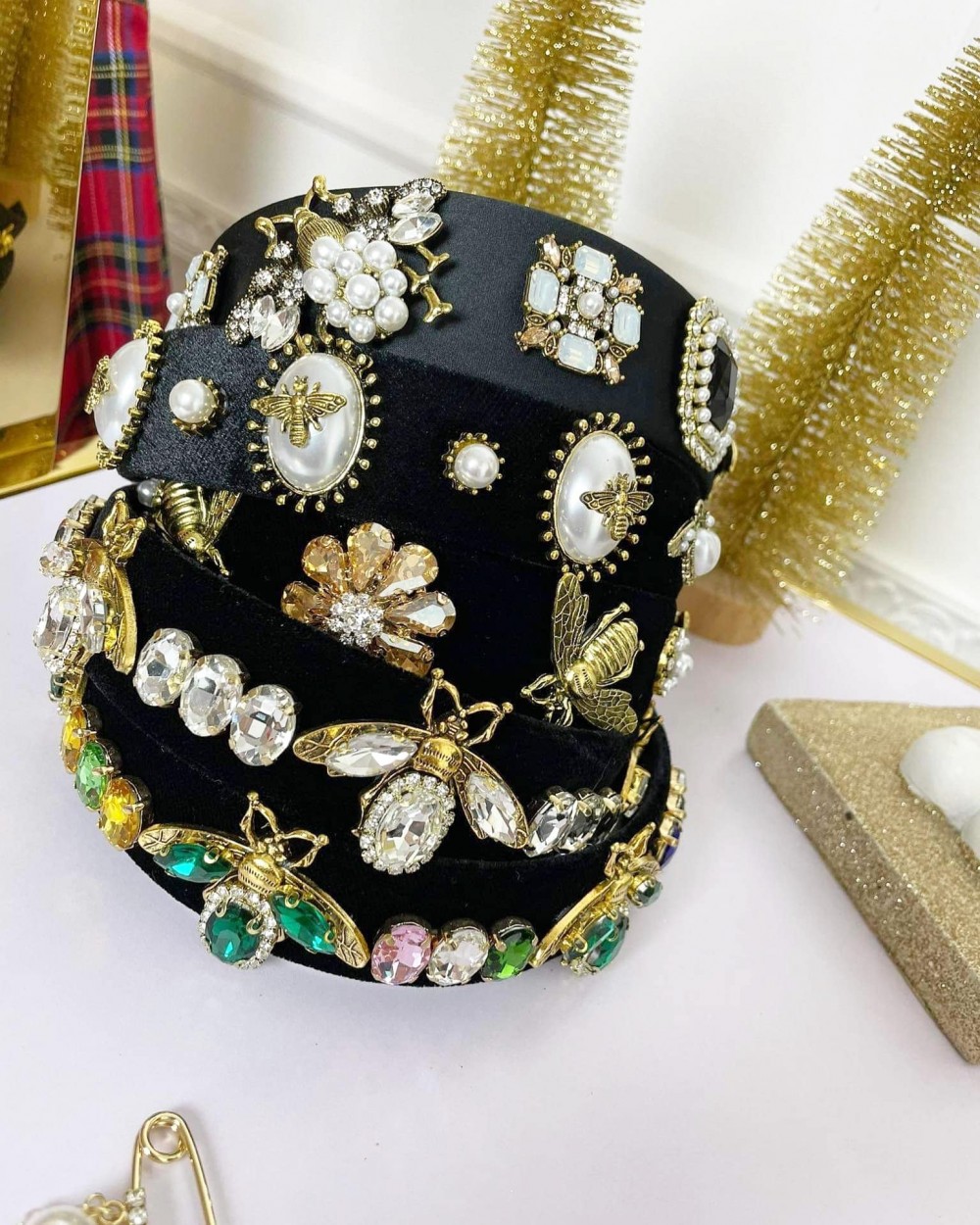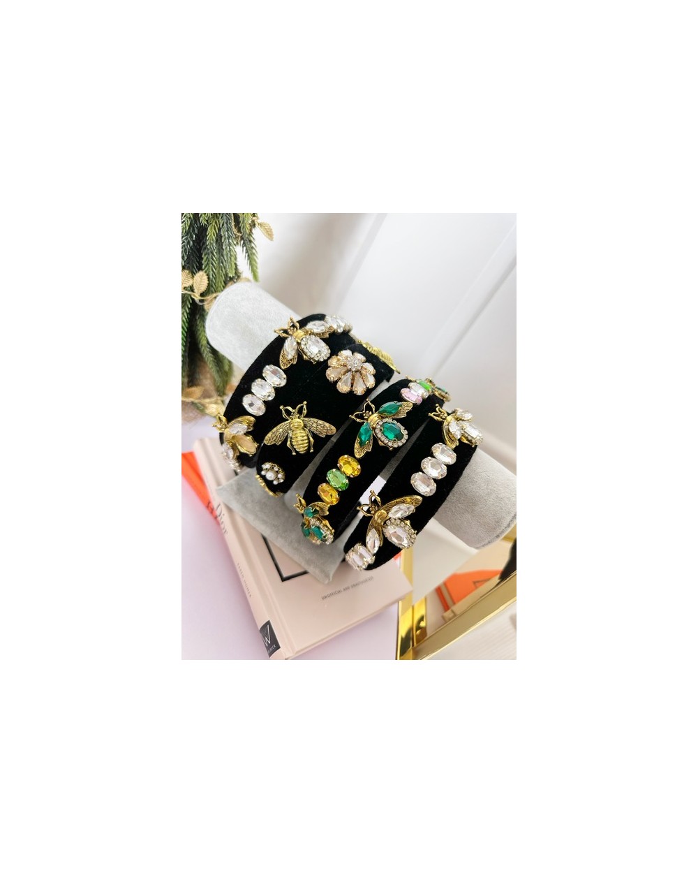 CZARNA OPASKA Z KAMIENIAMI KOLOROWYMI