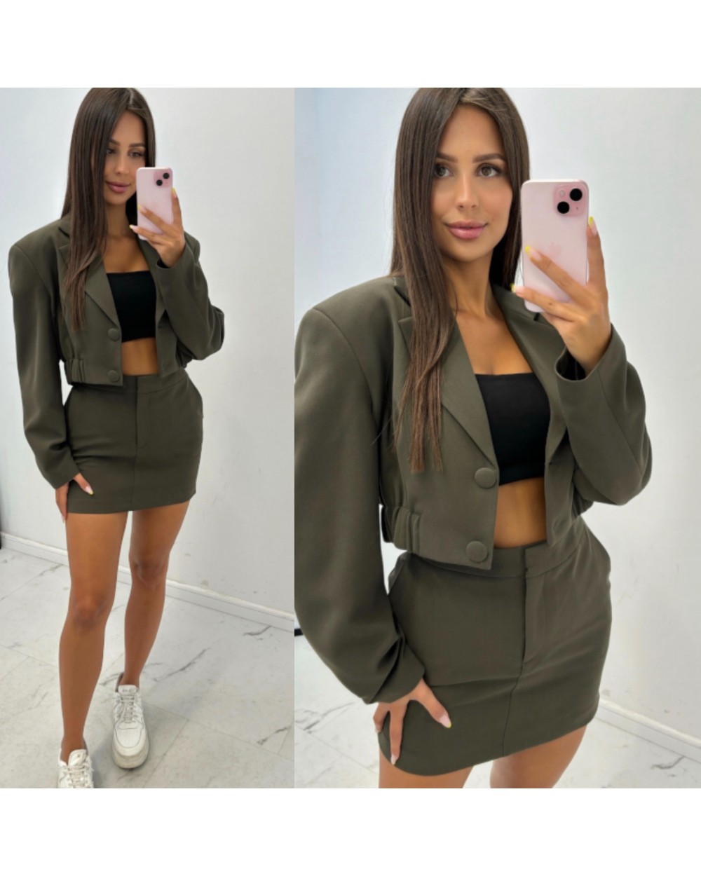 GARNITUROWY KOMPLET MARYNARKA I SPODNICZKA KHAKI