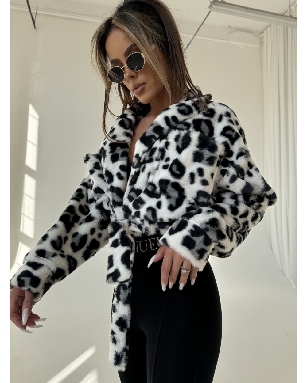 Stylowa kurtka futerkowa w panterkowy wzór, która przyciąga uwagę i dodaje charakteru każdej stylizacji. Wykonana z miękkiego, przyjemnego w dotyku sztucznego futra, które zapewnia ciepło i komfort noszenia, doskonała na chłodniejsze dni. Wyrazisty wzór w panterkę nadaje jej drapieżności, a jednocześnie pozostaje elegancki i ponadczasowy. Kurtka ma prosty, lekko oversizowy krój, który sprawia, że świetnie pasuje zarówno do casualowych zestawów, jak i wieczorowych stylizacji. To idealny wybór dla osób, które chcą podkreślić swoją odwagę modową i styl.