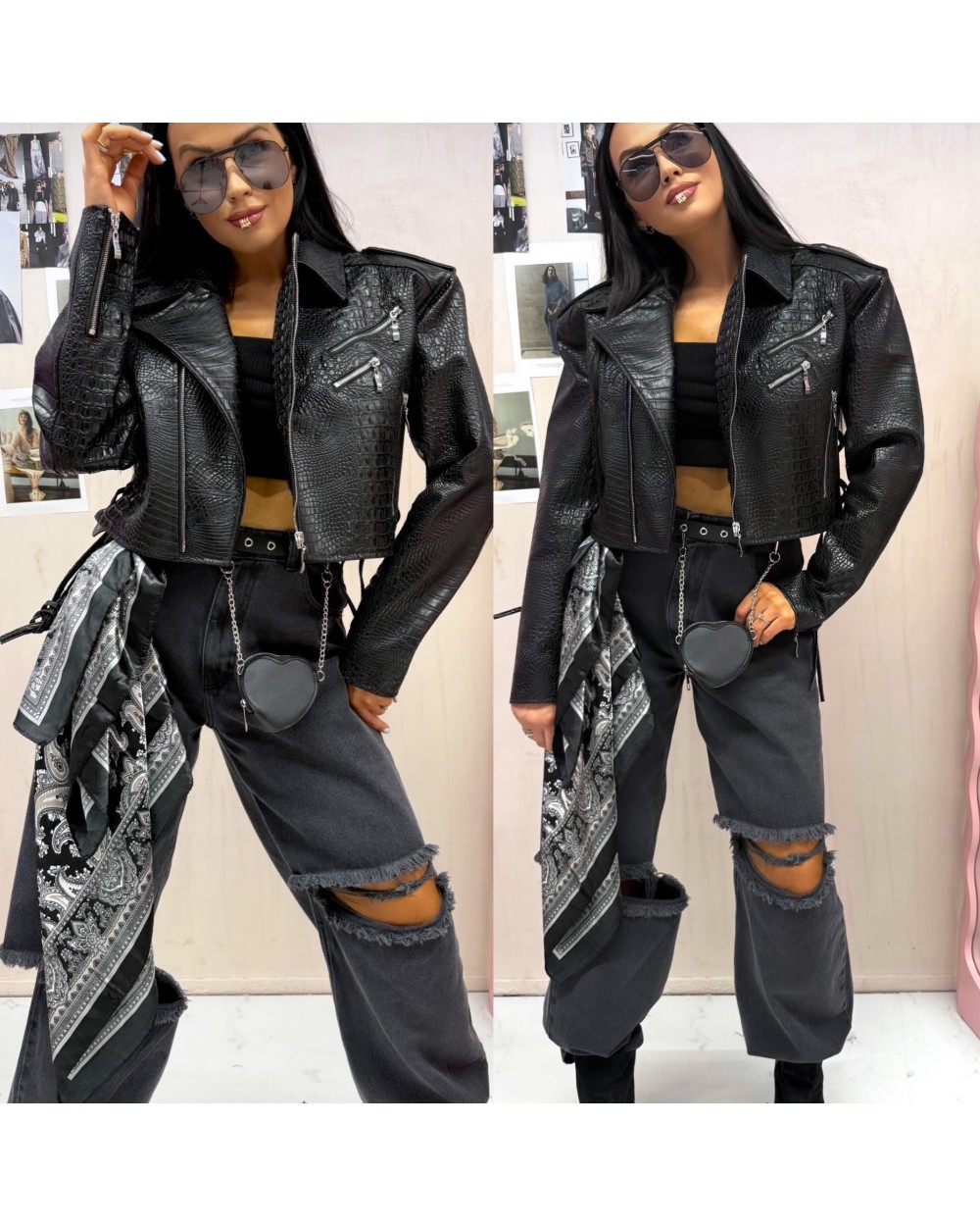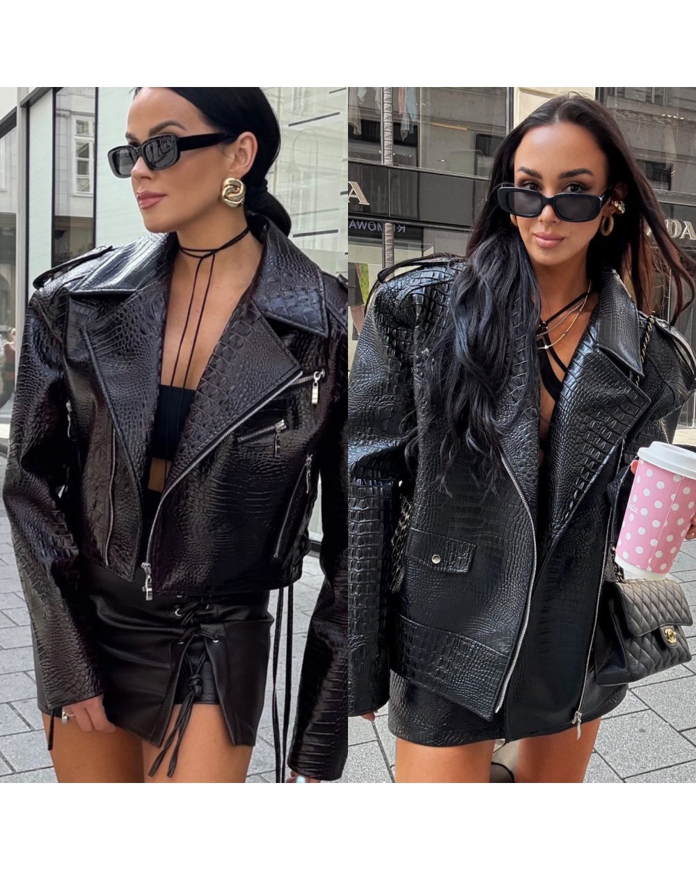 KURTKA RAMONESKA ▪️KROKODYL SKÓRA czarna