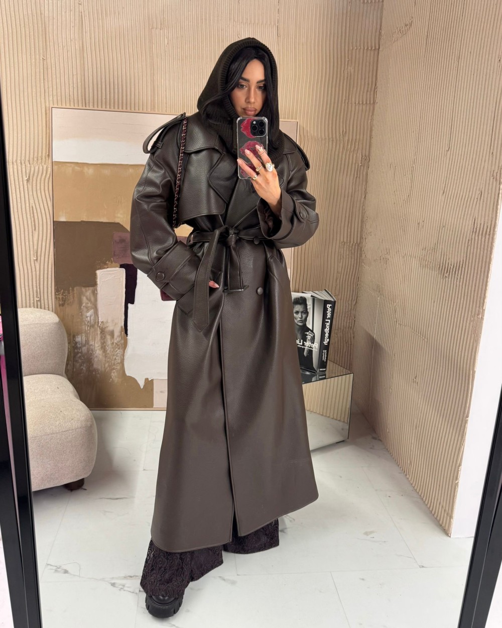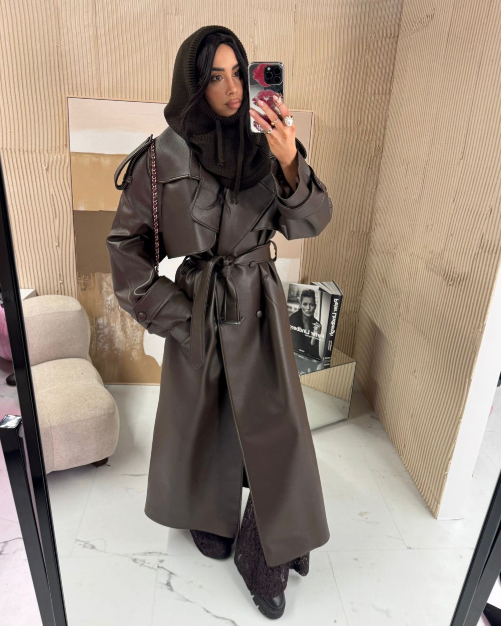 CZEKOLADOWY PŁASZCZ SKÓRZANY