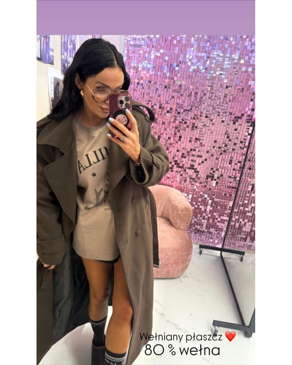 Długi płaszcz Uszyty z wysokiej jakości materiału wełnianego, zapewnia ciepło i komfort noszenia w chłodniejsze dni. Wnętrze wykończono elegancką podszewką, która podkreśla jego luksusowy charakter. Wiązanie w pasie paskiem pozwala dopasować fason do sylwetki, subtelnie ją podkreślając. Długość sięgająca kostek dodaje płaszczowi szyku i sprawia, że stanowi wyjątkowo stylowy element każdej jesienno-zimowej stylizacji.