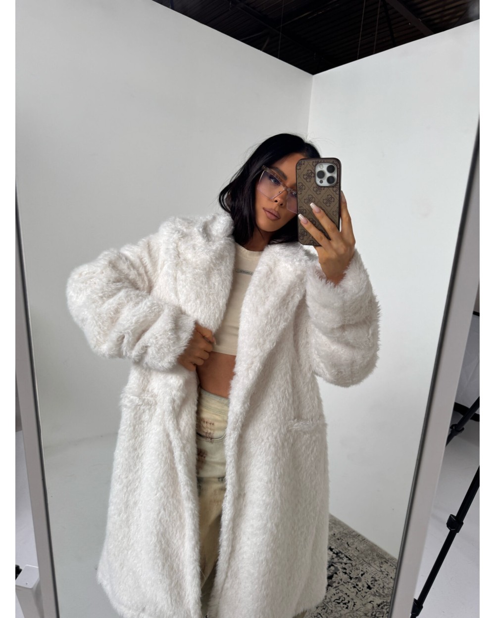 Ciepły, puszysty, spektakularny – ten płaszcz to zimowy statement piece, który łączy wygodę i styl na najwyższym poziomie. Wykonany z wyjątkowo mięsistego i miękkiego materiału typu miś, który od razu otula jak ciepły koc. Długość do kolan, luźny krój i podkreślone ramiona nadają mu modowego charakteru, a detal w postaci naszywki z logo z tyłu dodaje streetowego sznytu. Posiada umarszczone rękawy. To model, który sprawdzi się wszędzie: założysz go na spacer po mieście, wypad na kawę, zimowy city break czy nawet na luźne spotkanie z przyjaciółmi w stylu après-ski. Idealny do botków, kozaków, sneakersów – pasuje zarówno do joggerów, jak i dopasowanej sukienki. Stylowa alternatywa dla klasycznego płaszcza – komfort termiczny i modowy efekt gwarantowane.
