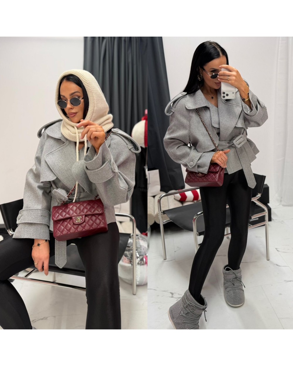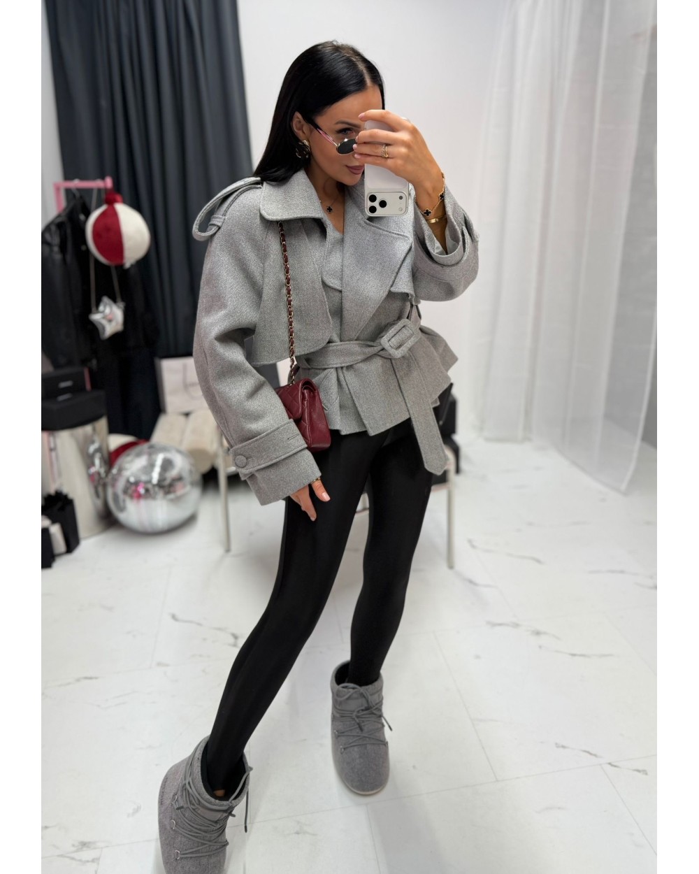 STYLOWY WEŁNIANY PŁASZCZ ▪️szary wiązany