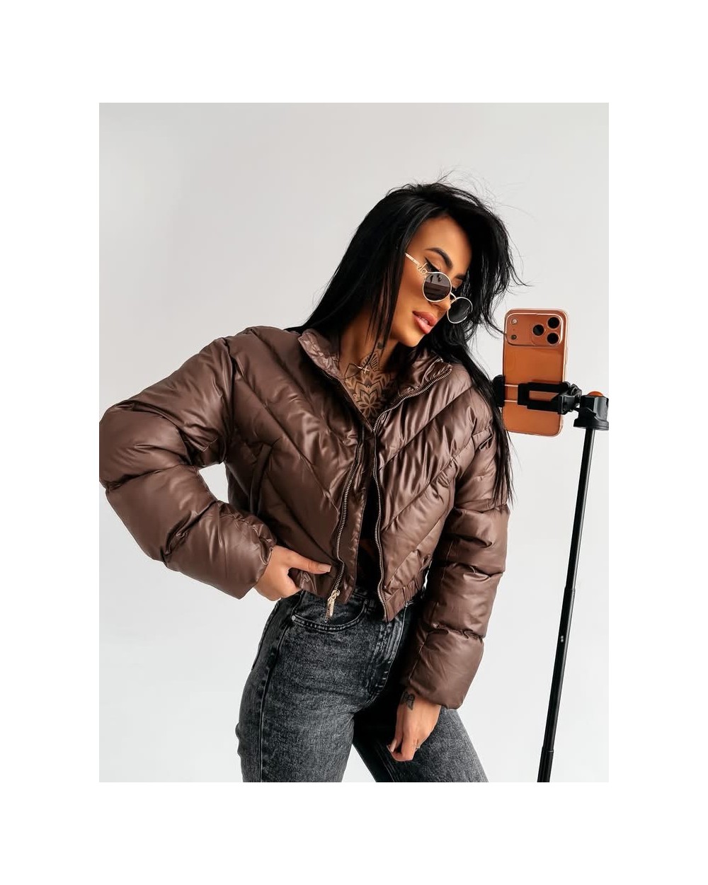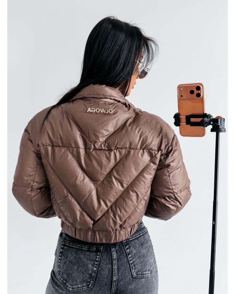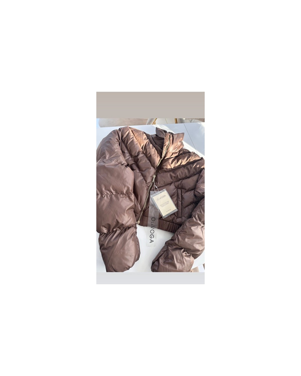 Pikowana kurtka OLV o nowoczesnym, lekko skróconym kroju. Model wykonany z gładkiej, lekko połyskującej tkaniny. Kurtka zapinana na solidny, złoty zamek z logo marki OLAVOGA. Model z wysoką stójką. Brzegi zakończone elastycznym wykończeniem. Na tyle umieszczone subtelne, złote  logo marki OLAVOGA. Kurtka posiada praktyczne kieszenie zapinane na zamek.